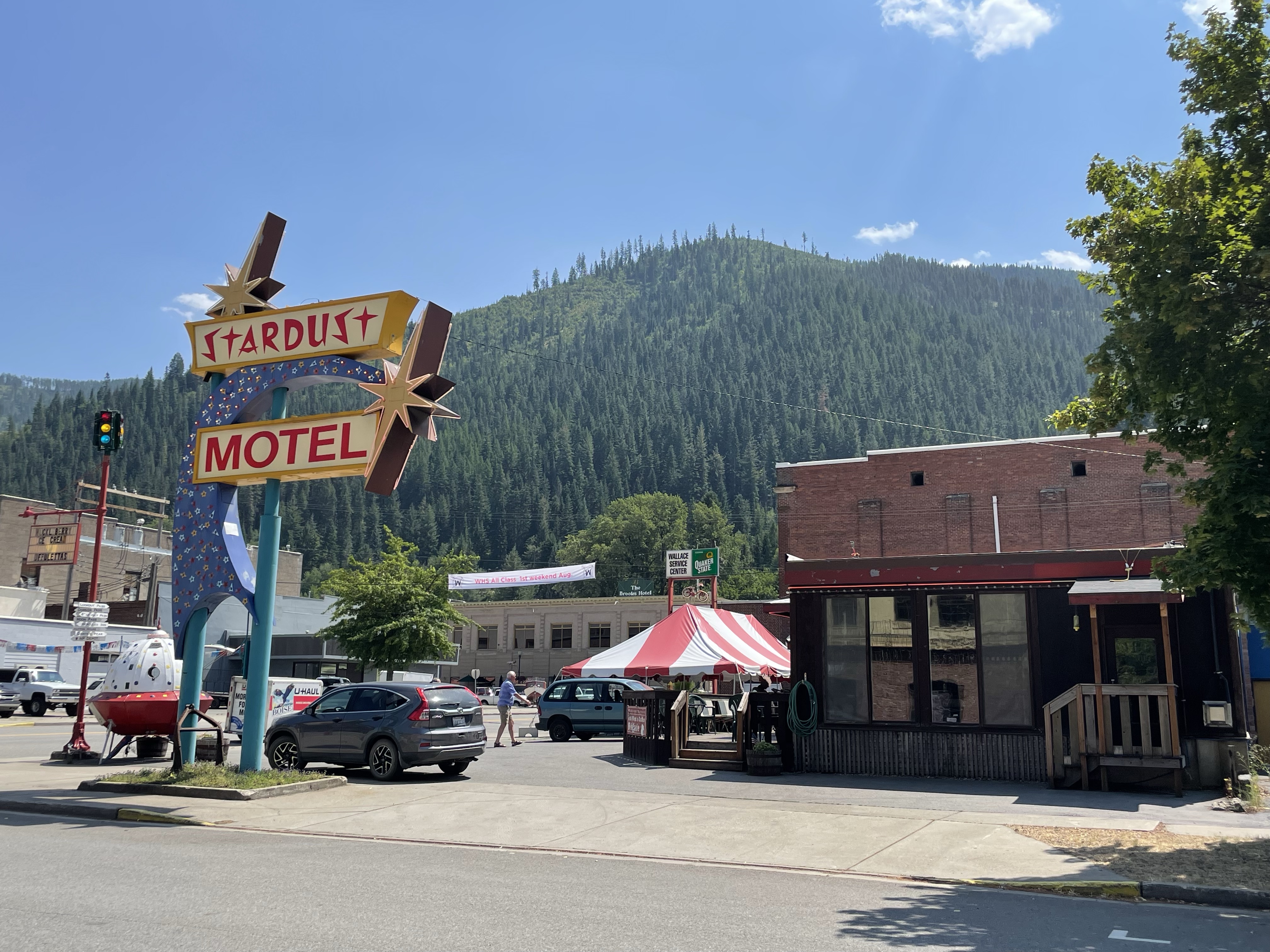 After riding around the town of Mullan to see this small mining town, we ride back to Wallace. Funny conversation when we are in Mullan. There is a hotel everyone thinks reminds them of the TV Series Schitt’s Creek – what do you think?