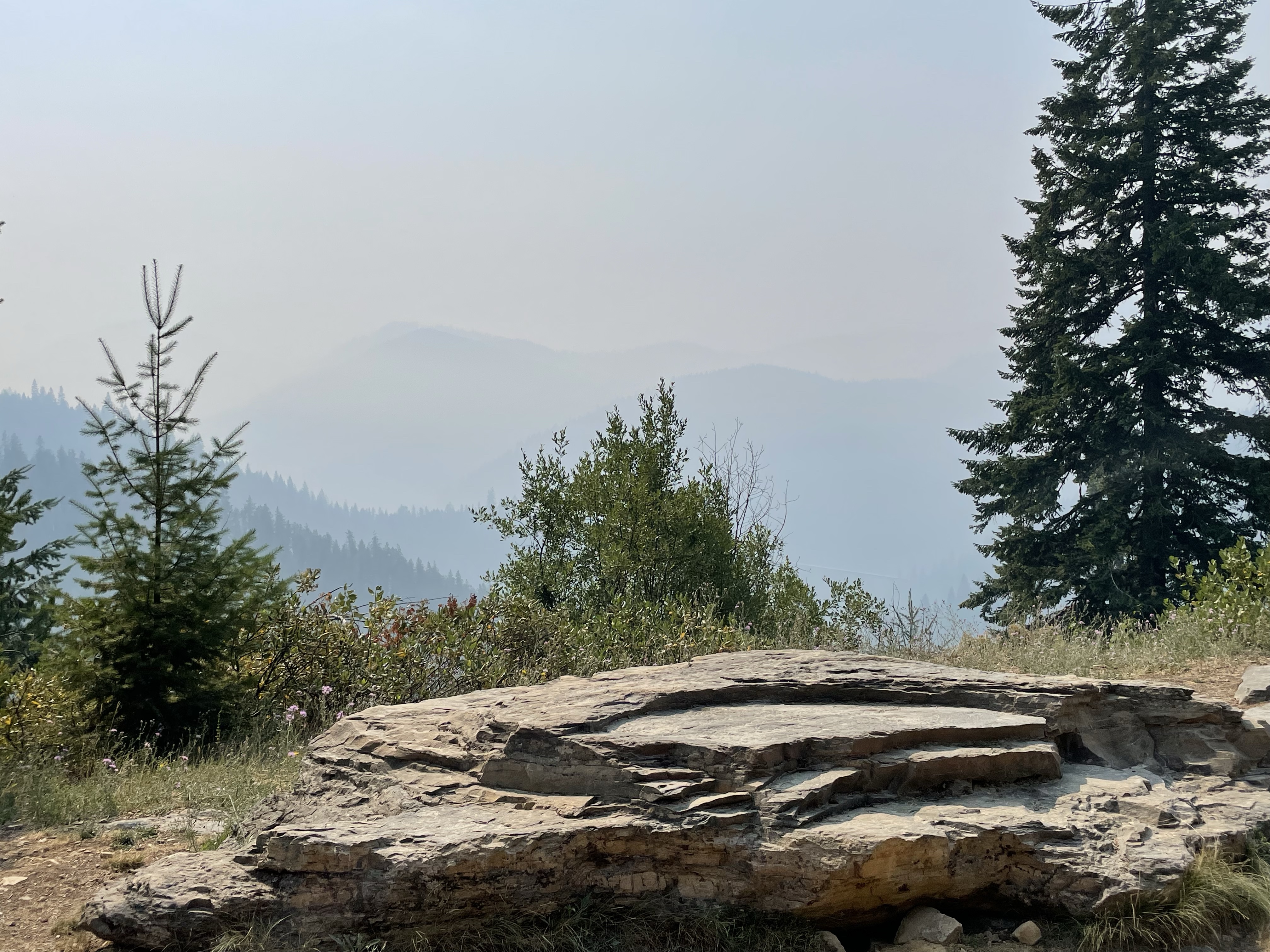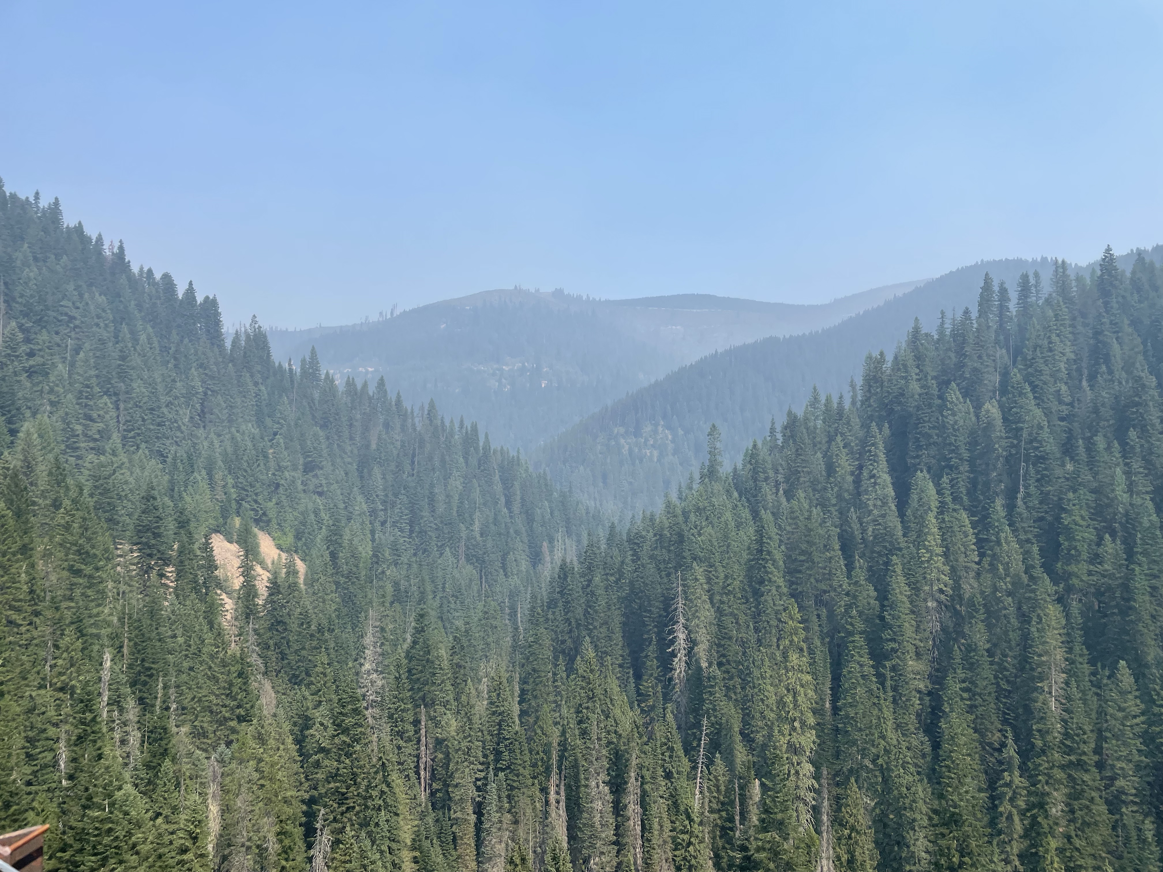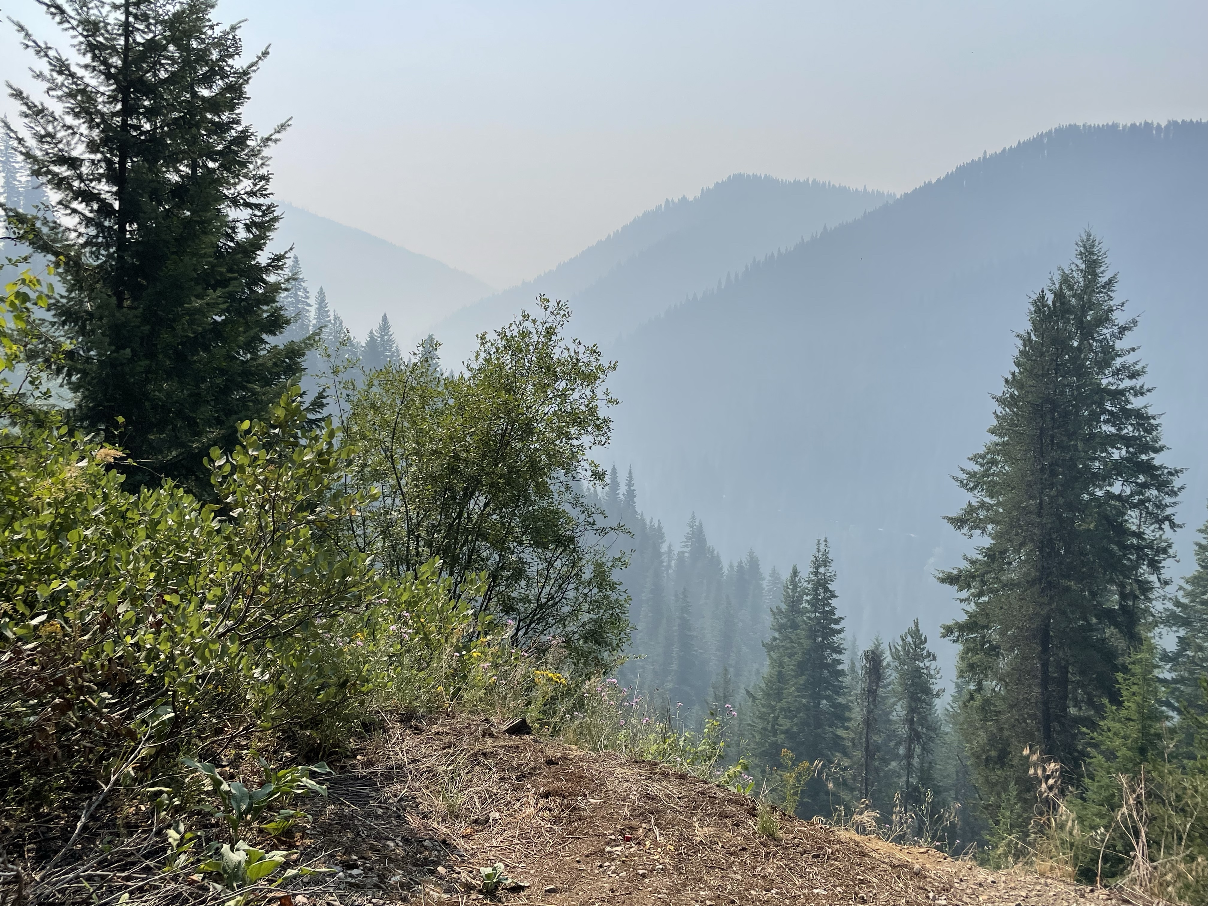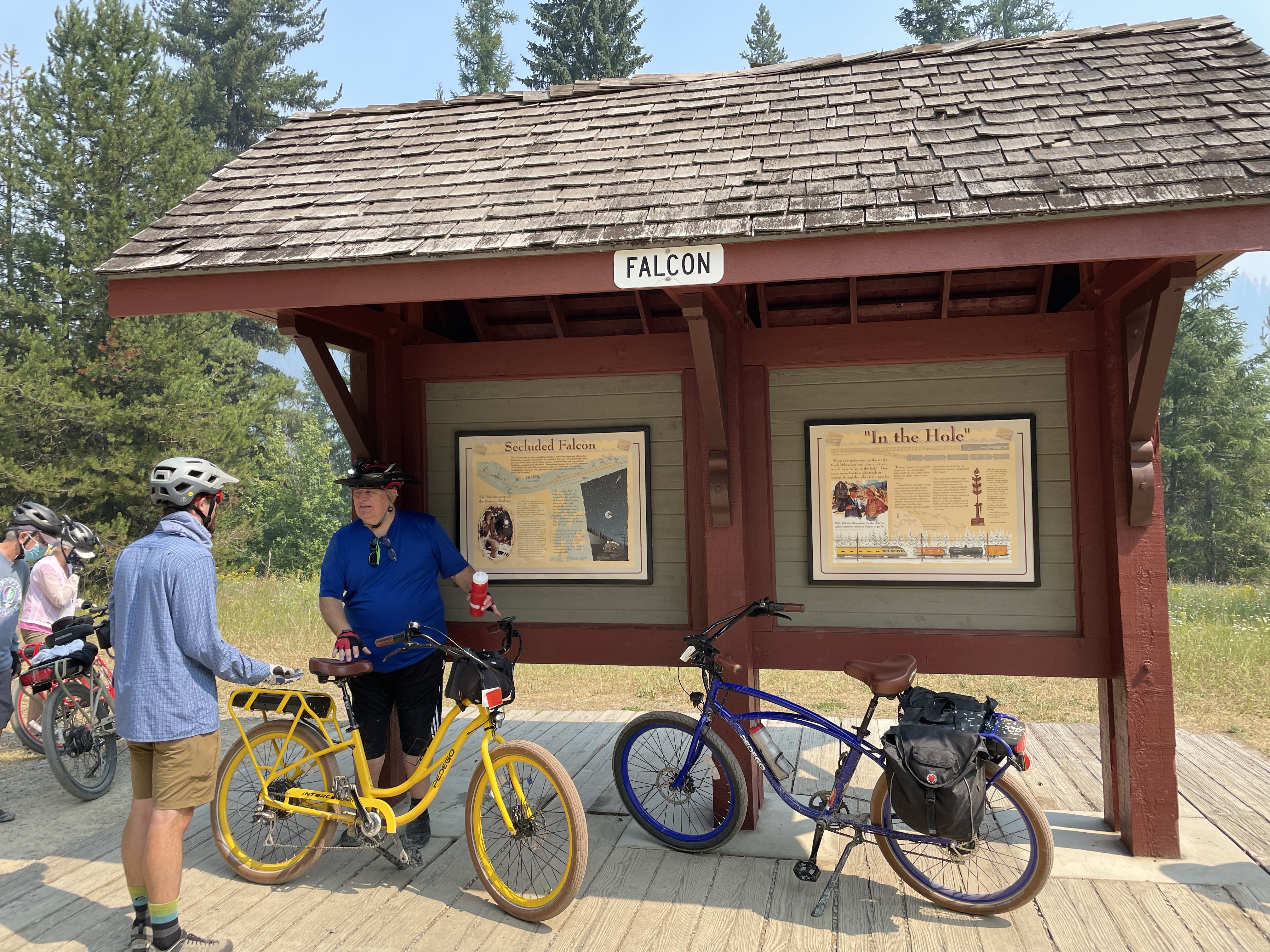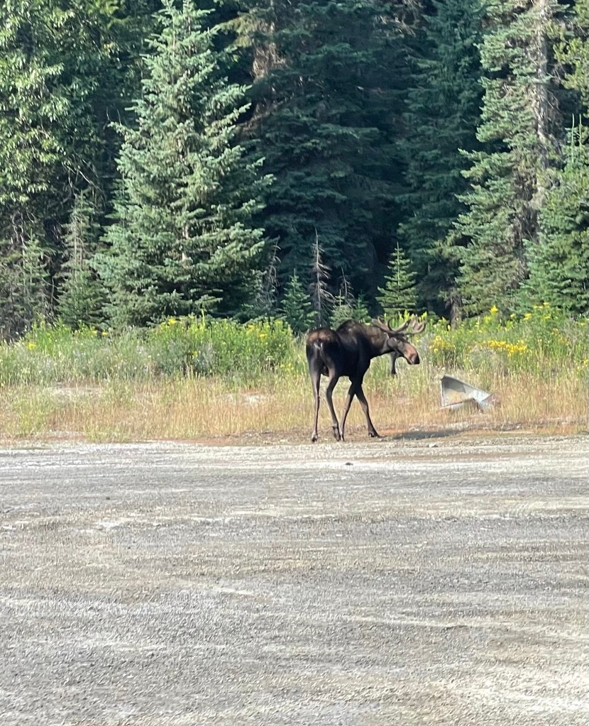 It is hard to believe this is the last day of our bike tour by Row Adventures on Pedego electric bikes. Our two tour guides have taken good care of us and our machines. Our bike trail today is the Hiawatha – the ‘crown jewel’ of rails-to-trails. Formerly the Milwaukee Railroad’s train line from Chicago to Tacoma, built through the mountains with tunnels and trestle bridges. The Hiawatha at Lookout Pass has 7 trestles and 10 tunnels to ride through. Beautiful scenery obscured somewhat today by the smoke in the air from the fire we saw in the distance yesterday. A bonus just as we take the road into the parking area, we see a moose.