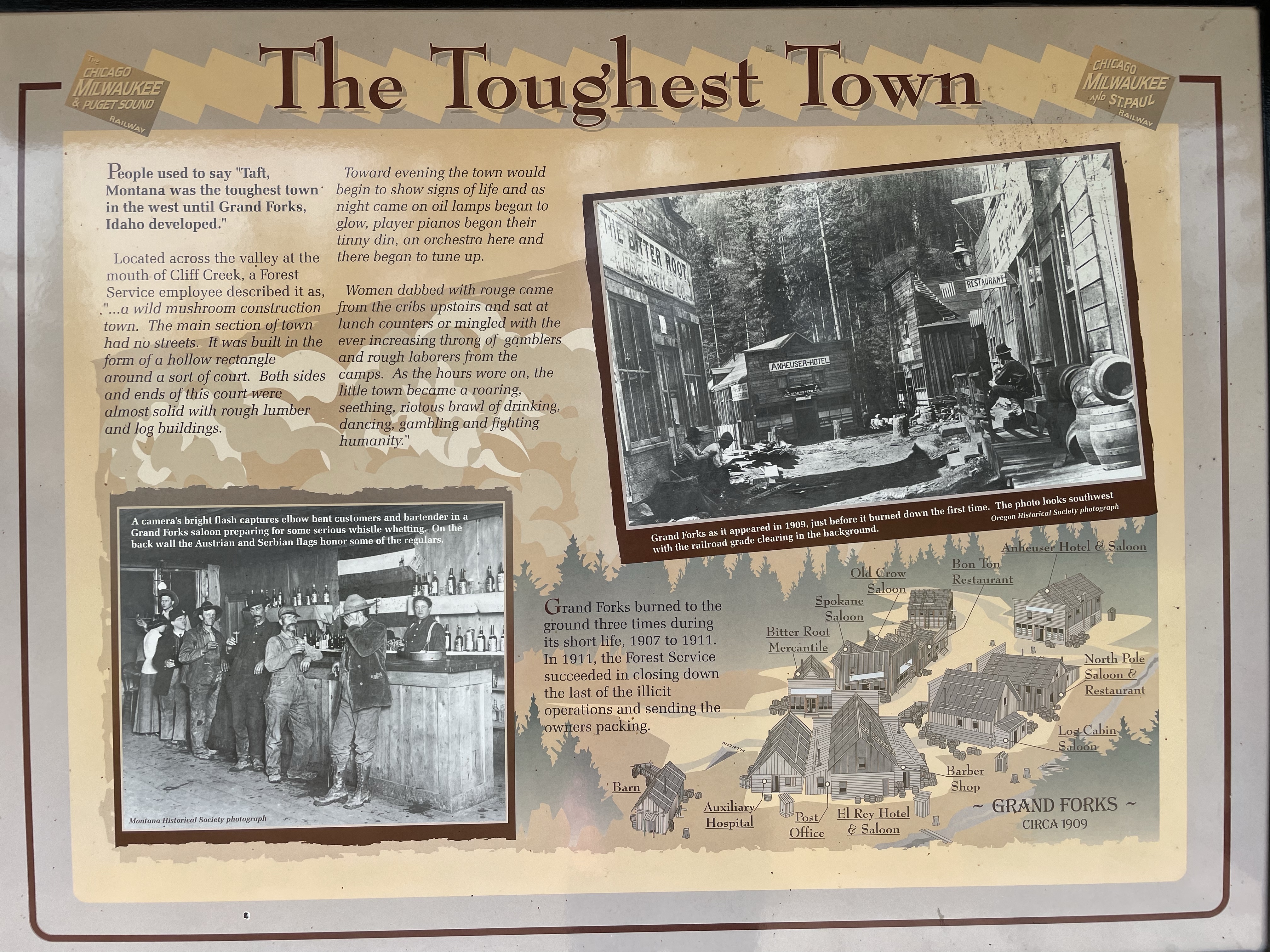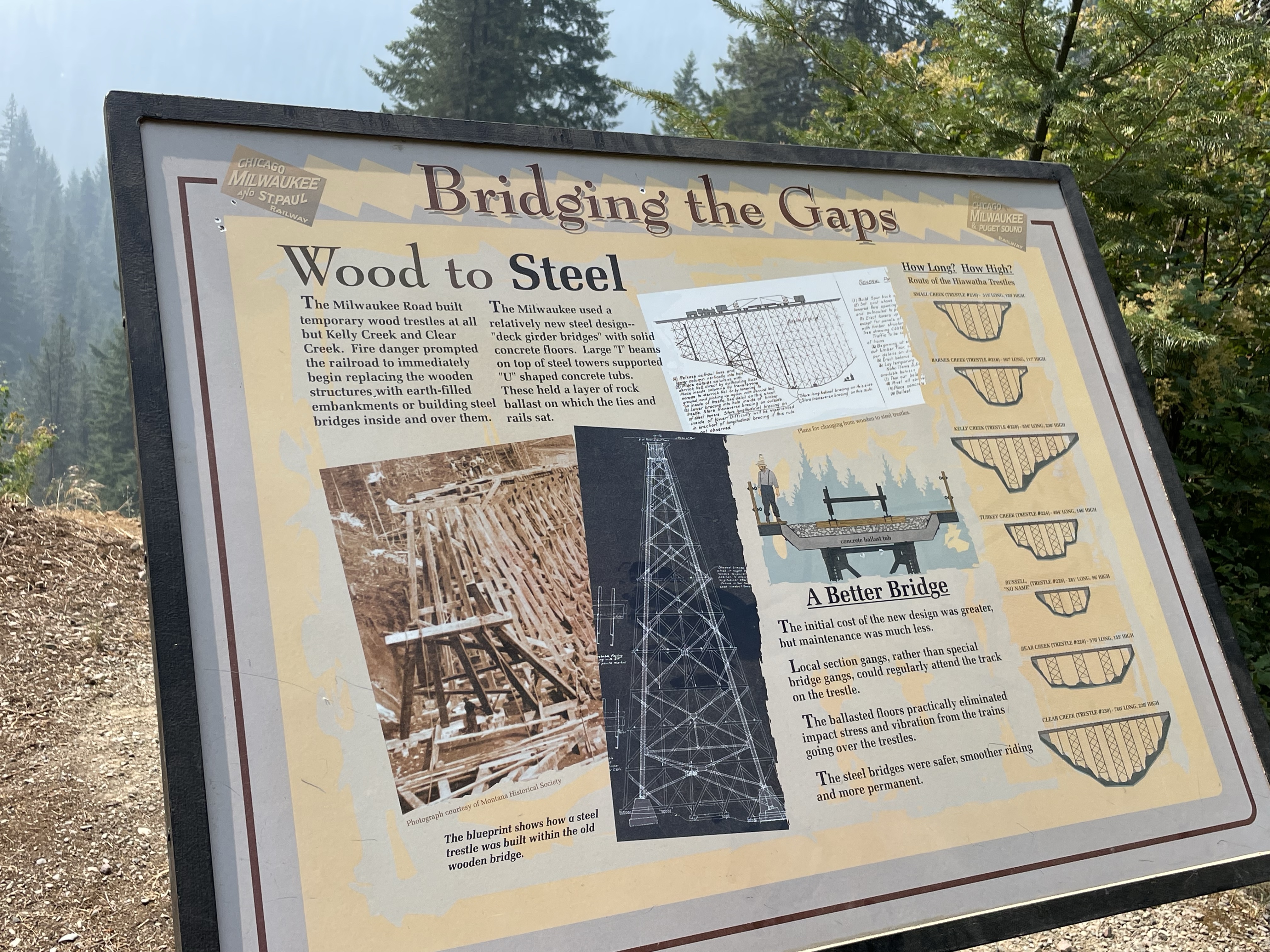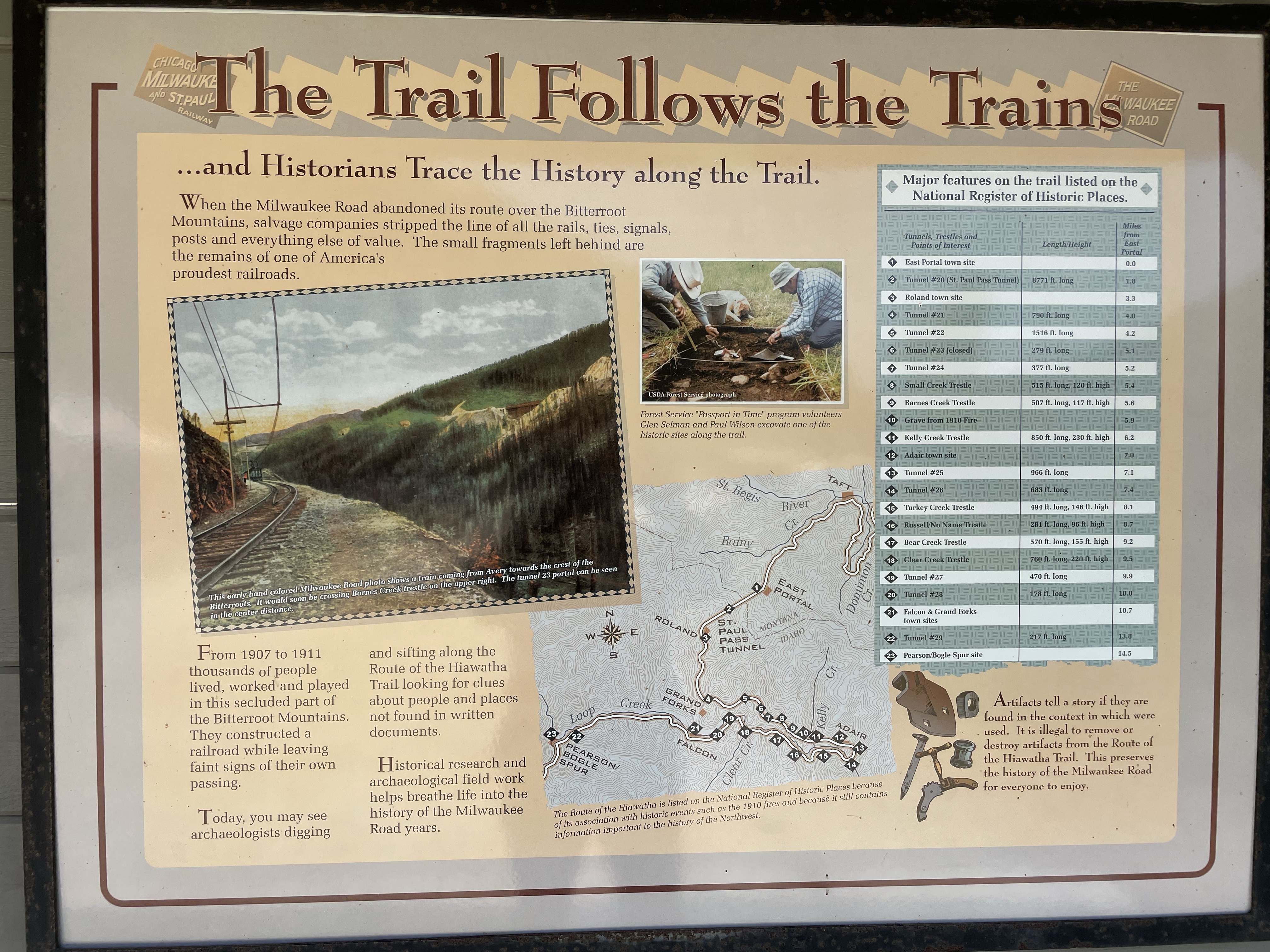 There are display boards along the trail explaining everything from how they built the trestles to the small towns that were located along the route of the Hiawatha train. These towns are long gone but there are small structures with display boards telling the history.
