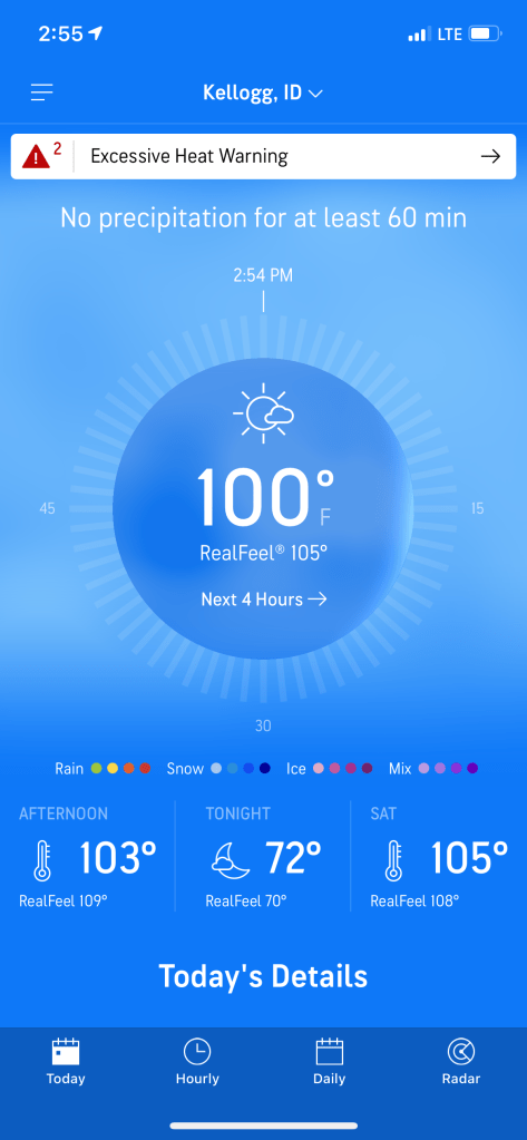 Connor drives the van back to Spokane, WA, about 2 1/2 hour trip on I-90. The temperature today has climbed to 100!