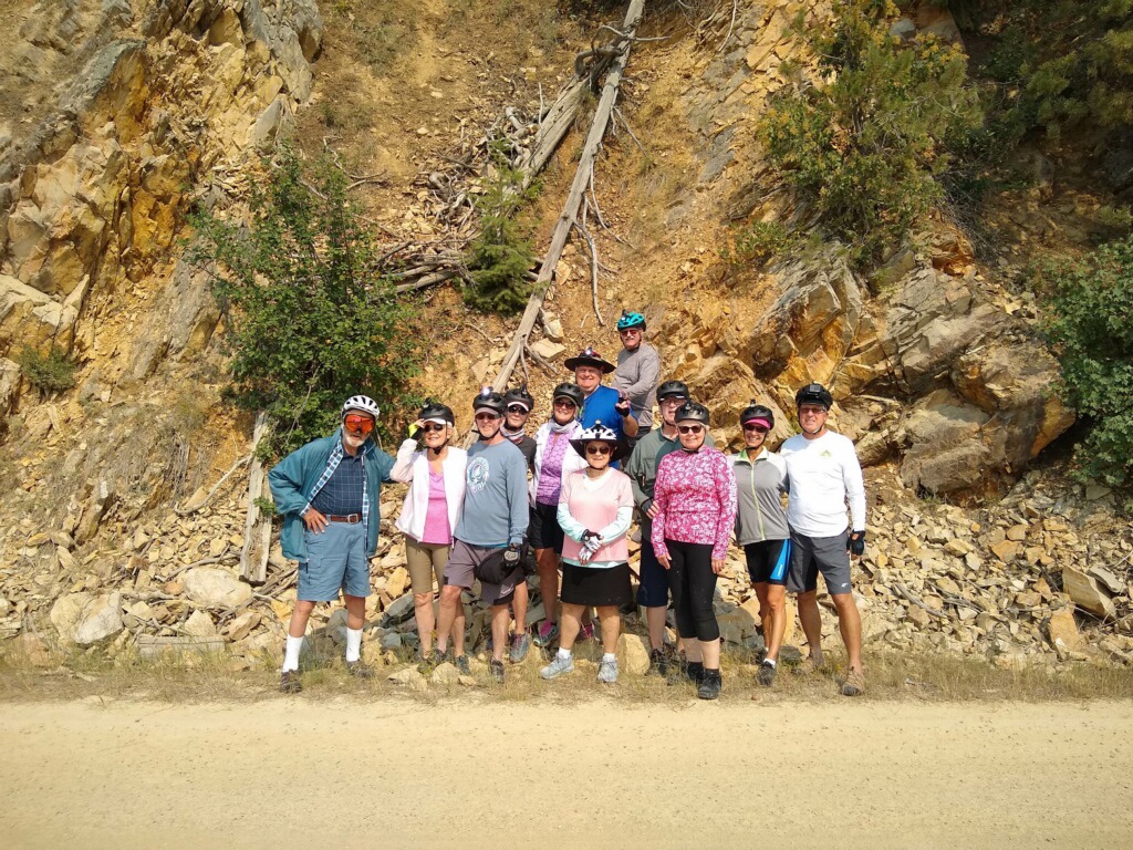 The trail is downhill and you can shuttle your bikes back or ride your electric bike cruising right up the long incline. Because of this nice feature, there are a lot of people cycling – large groups and families with young children. On a crushed gravel trail, it makes for an interesting ride, especially with 5 years old riding on the wrong side of the trail as you are approaching at 14 mph on your bike!