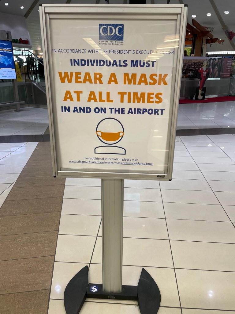 Airports and airplanes still require masks. We are off the plane at midnight, pick up the bags, and wait for our shuttle to the off-site parking. Masks off outdoors!