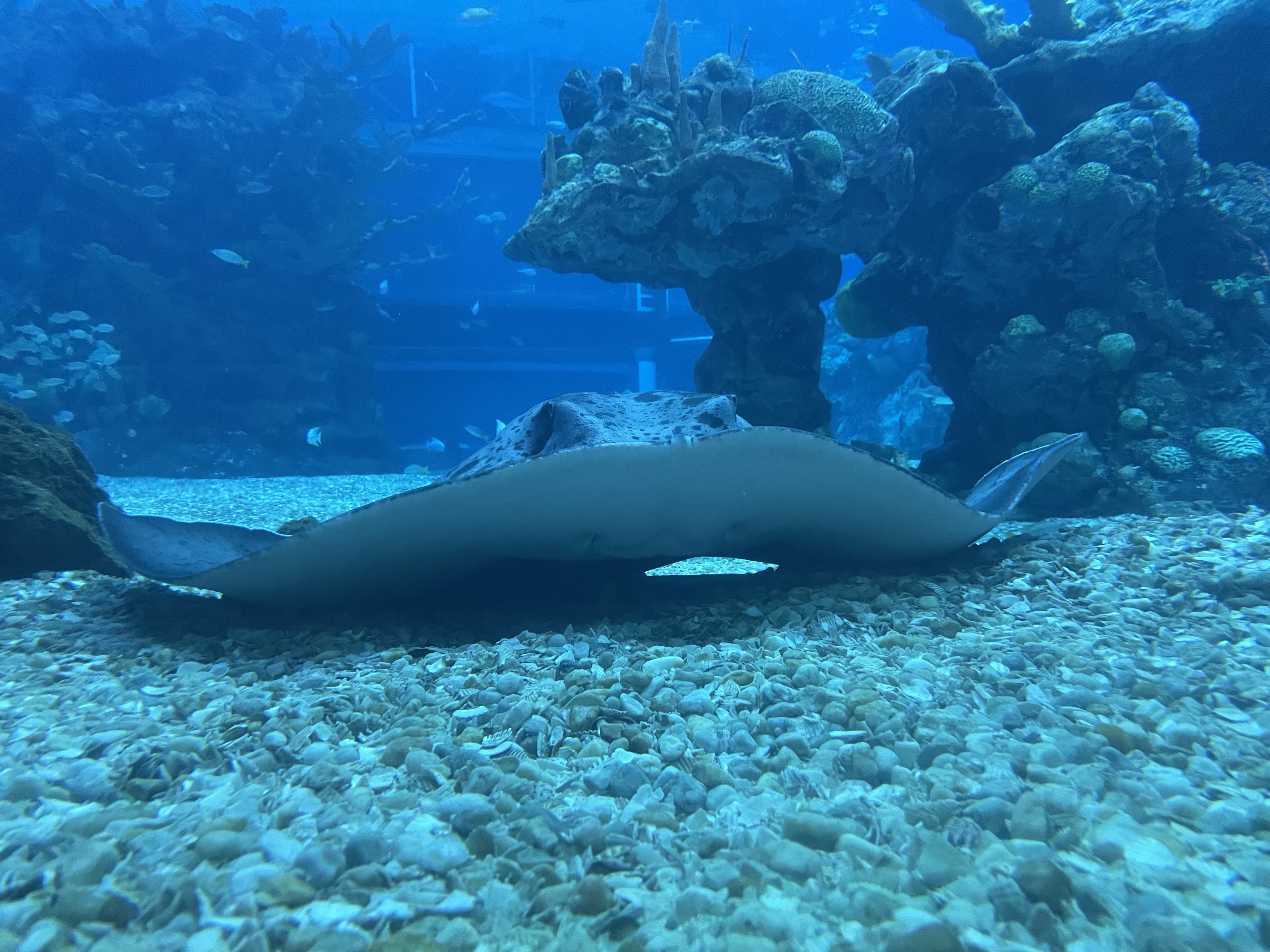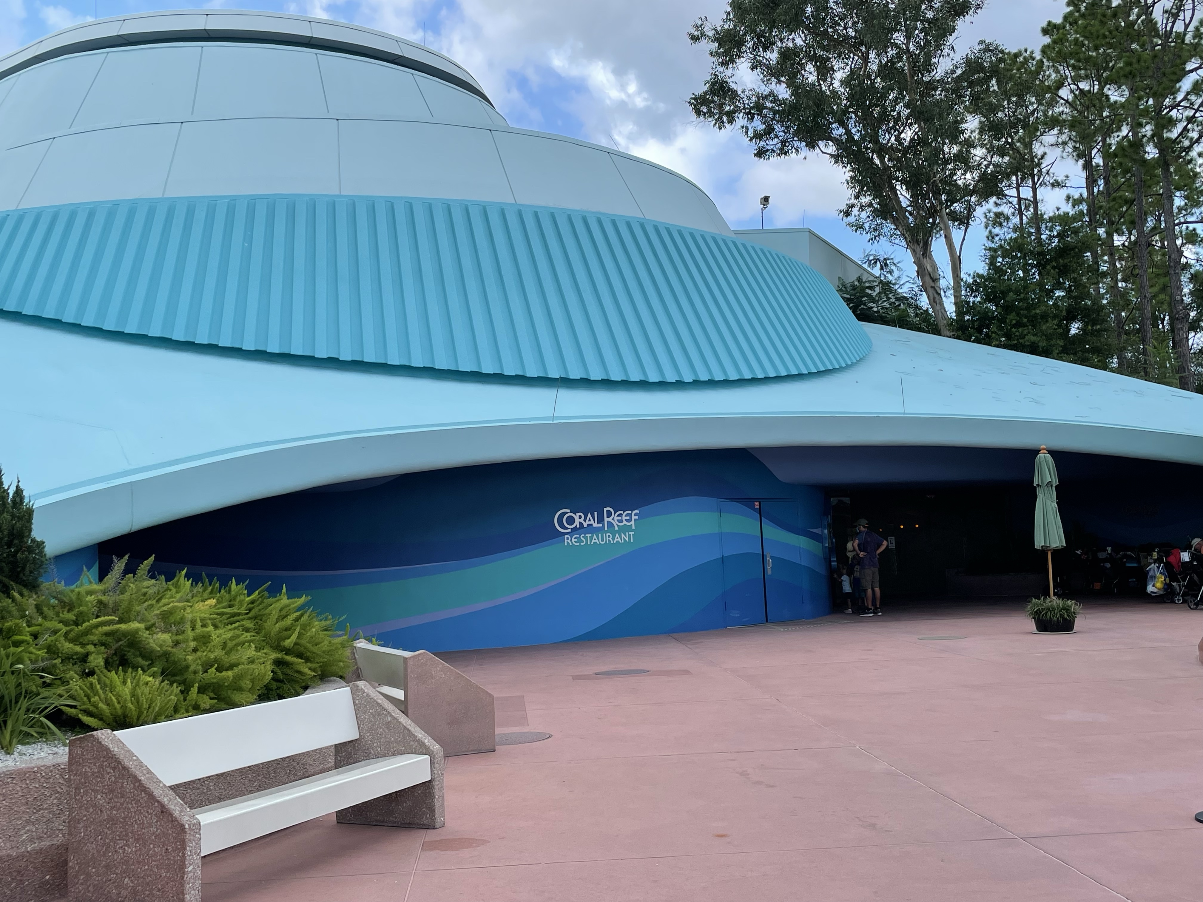 Tonight our dinner reservation is at the Coral Reef Restaurant in Epcot in the Living Seas attraction. We have not been in here in years. They have done a nice job of upscaling the decorations. Sitting next to the giant fish tank is always entertaining. Tonight we have a huge whiptail ray (no doubt a Tampa Bay Rays fan) staring at us and beautiful sharks and fish swimming past.