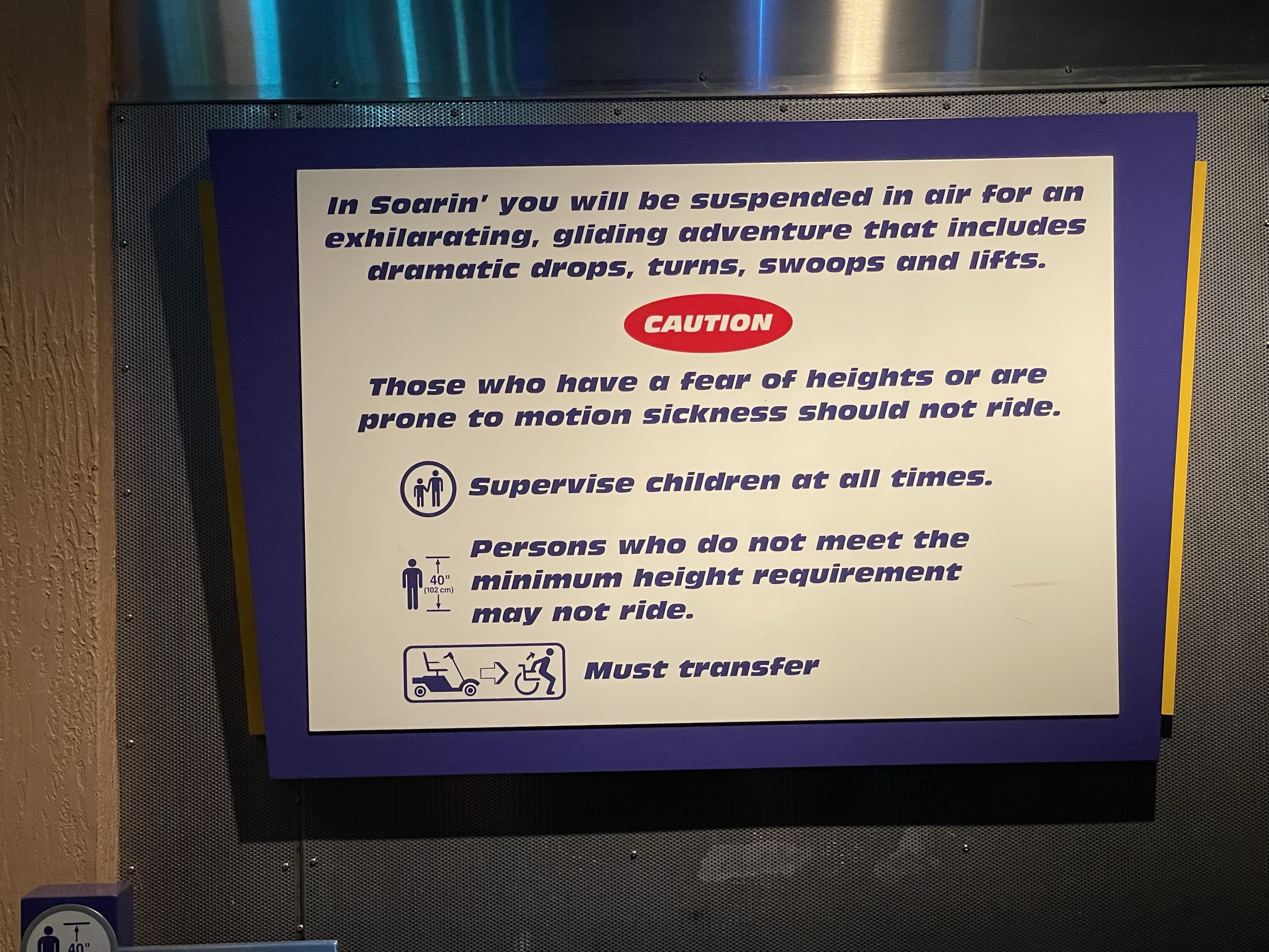 A short drive in late afternoon and we are at Epcot. It is 4:00 PM and people have either melted or left the park until the evening. Very quiet – we walked on with no wait to the very poplular Soaring!