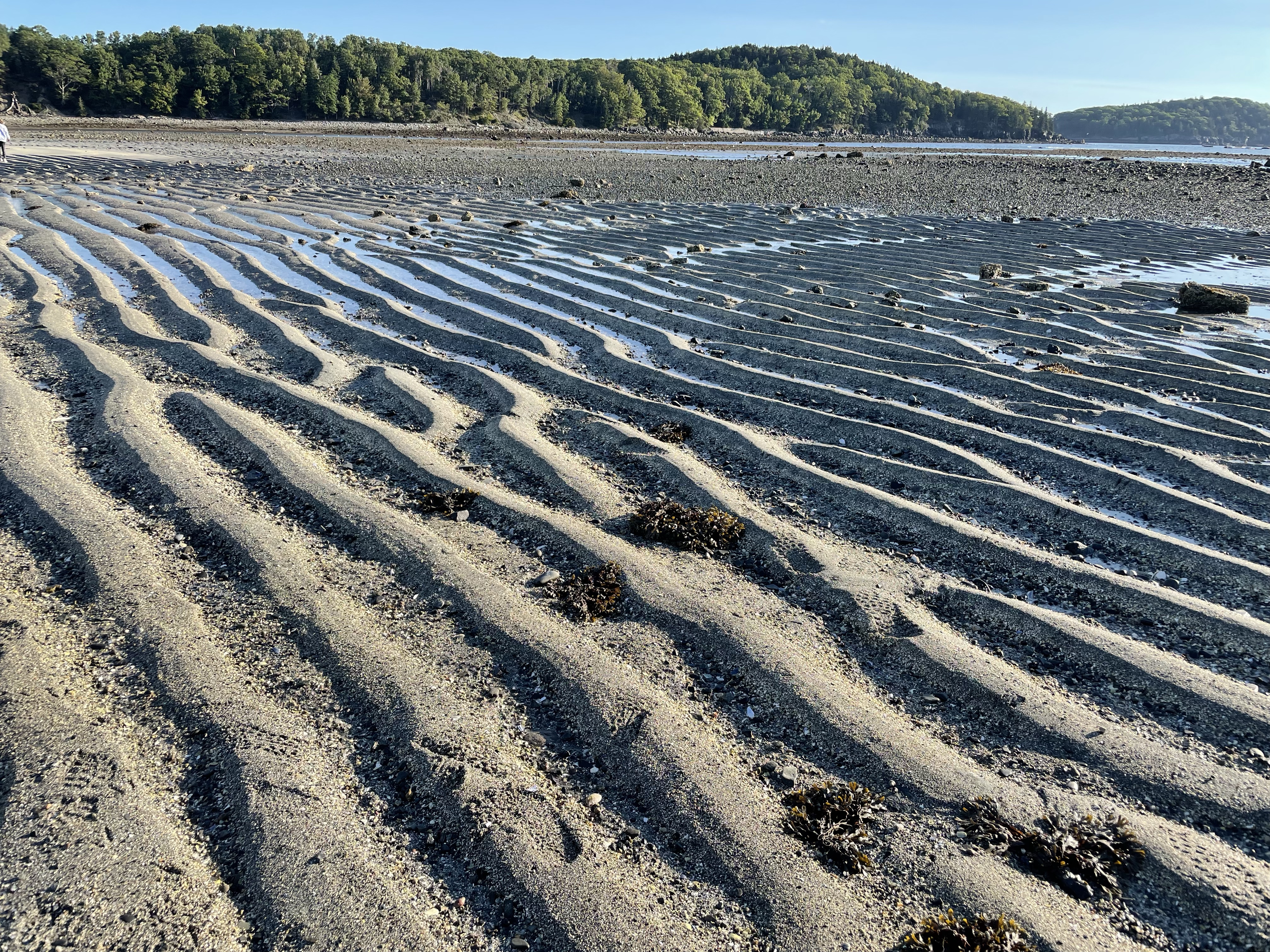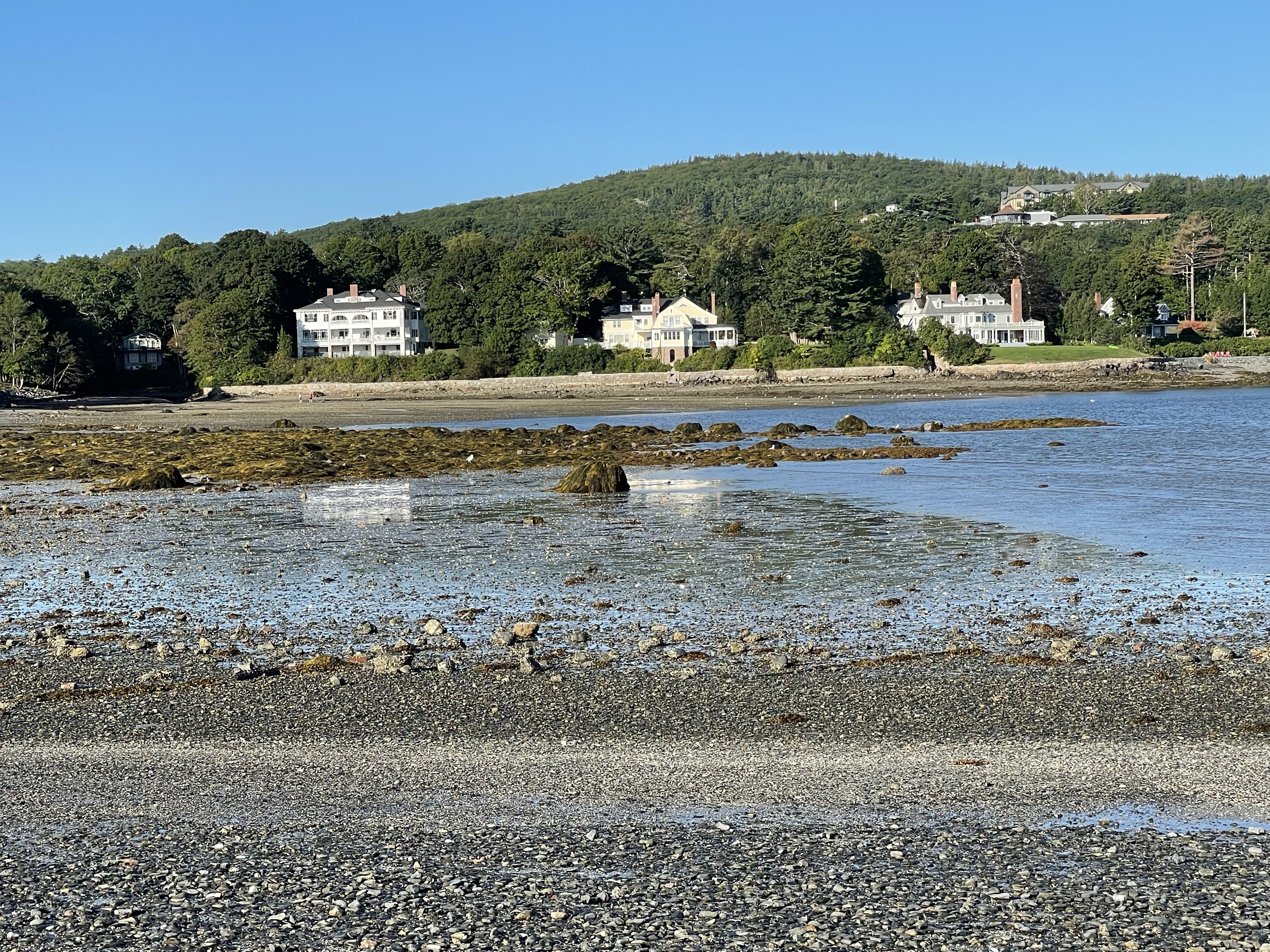 A week has gone by so quickly. Took my son to the airport this morning before the crack of dawn and came back to the sunrise. To keep moving, we wander downtown and discover it is low tide. Now you can walk across the bar of Bar Harbor. This picture is exactly where I was standing yesterday with the waves crashing in.