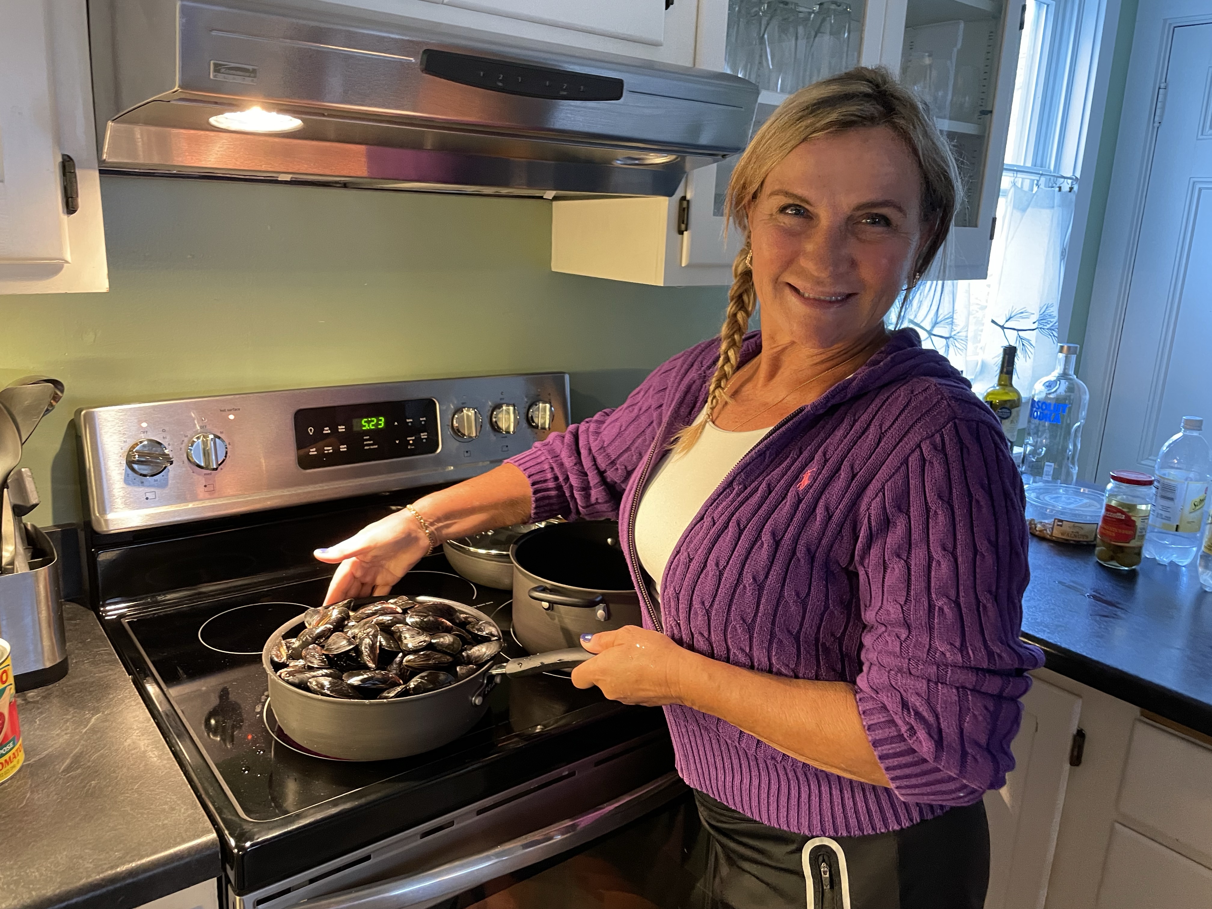Afterwards, we walked home and connected with our friends who are visiting. We took another walk along the Shore Path and then lucky us, a home cooked Italian dinner – mussels, shrimp and pasta. Delicious!