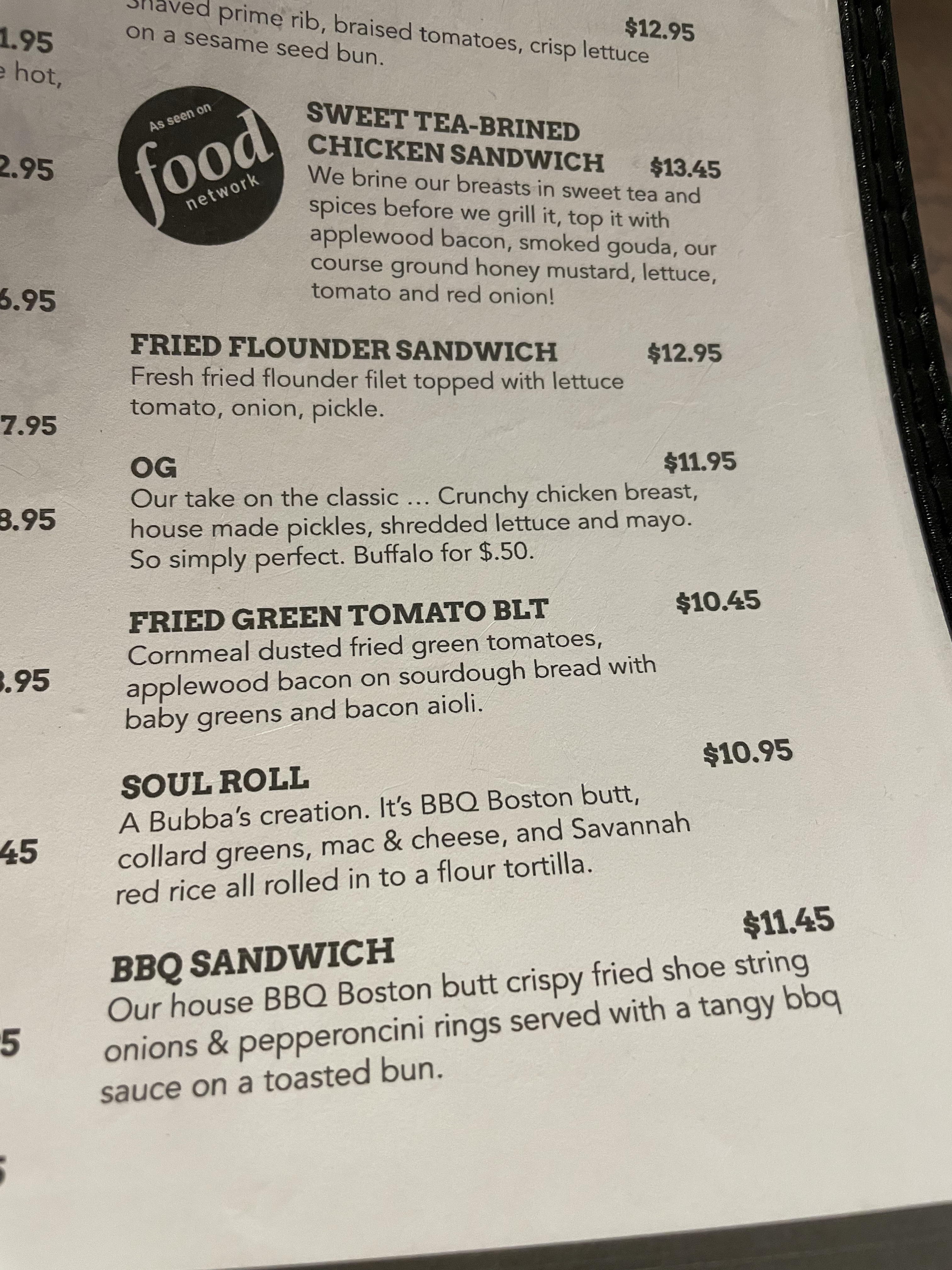 Dinner tonight is at Bubba’s Bistro, clever name. Apparently it was on the Food Network. Southern creations at their finest. Delicious. We recommend Bubba’s but be forewarned, it has had several names over its short history – Bubba’s, Southern Comfort, Magnolia’s – so only God and maybe Bubba know what it will be named on our next trip up the Coastal Flow.