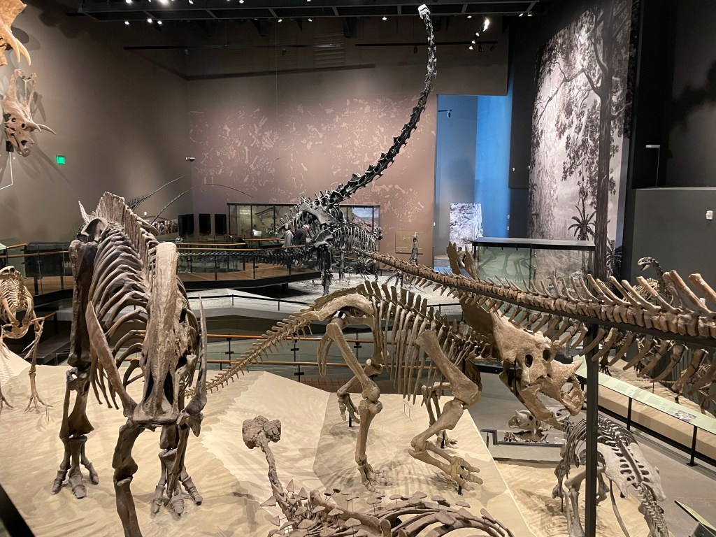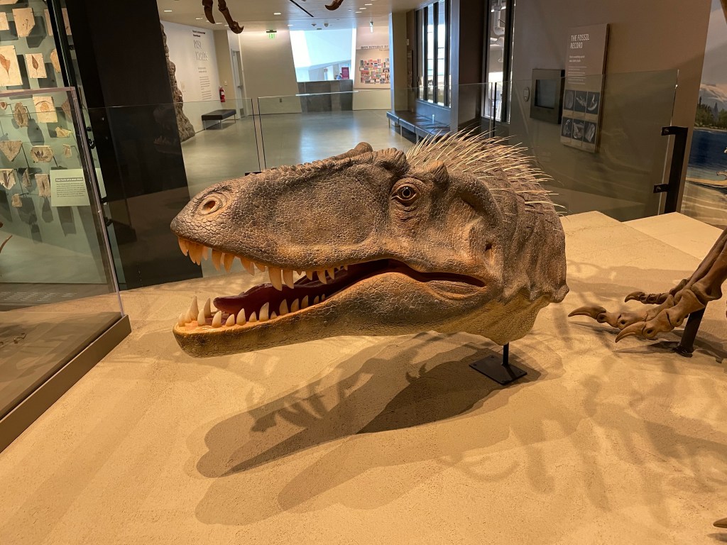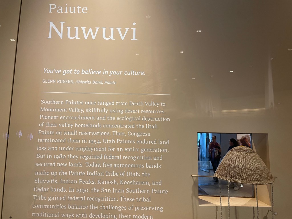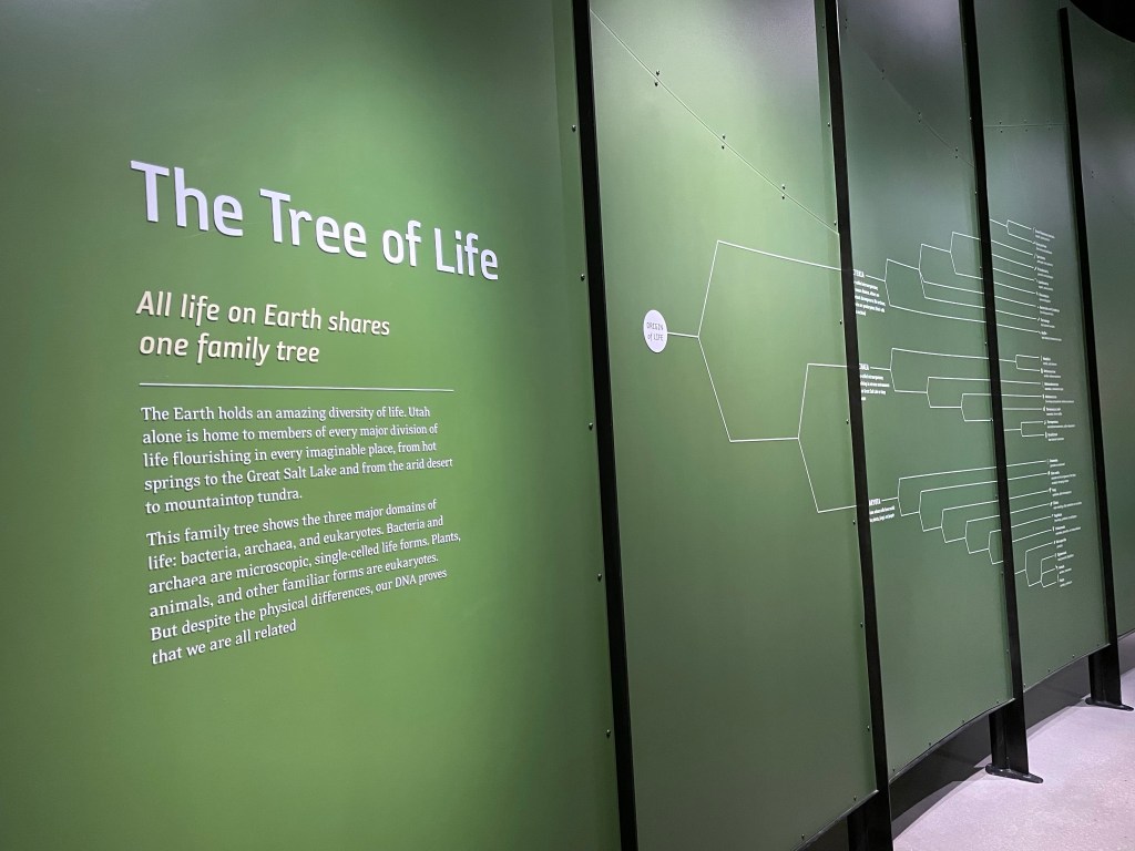 It’s a short drive from our hotel to the Natural History Museum of Utah. The architecture is worth coming to enjoy. The building blends into the mountainside and the inside is laid out in such a way you elevator to the top floor and then walk down through Earth’s natural world, from top to bottom, today to yesteryear.