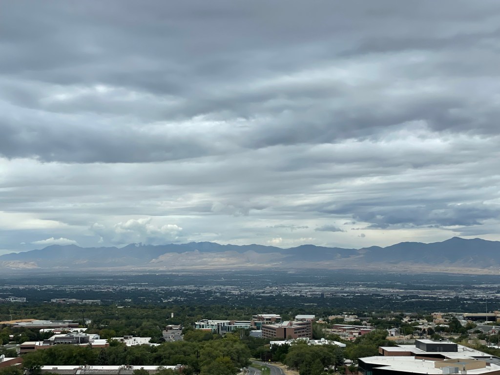 It’s the final day of our SLC visit and we are surprised in the morning with a few rain drops and a view of the mountains – no more smoke!