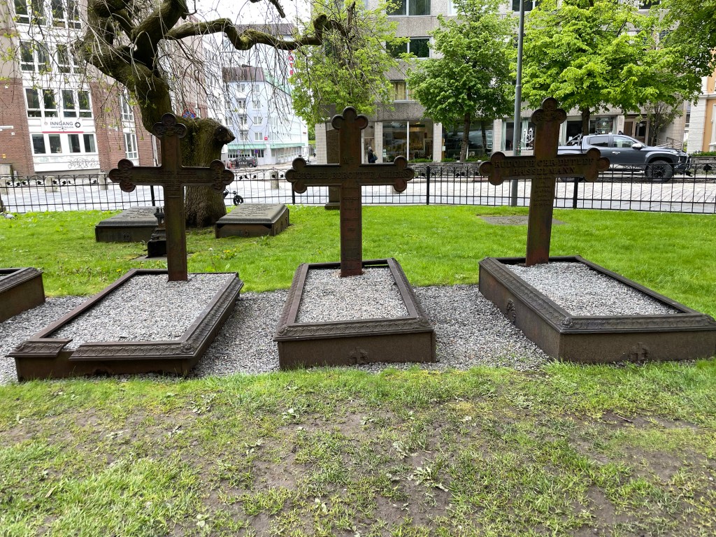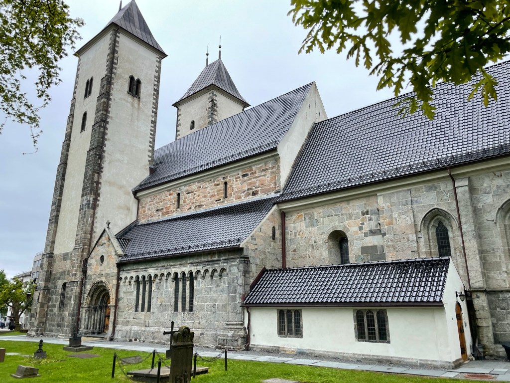 Our bus tour takes us through the center of Bergen, past the fort that protected Bergen, the Tower where the King resided starting in 1200, a sailing ship that is for training new sailors, and stopping at St. Mary’s Church where we get off the bus for a short walk. The church was originally built in 1070, rebuilt in 1349 and again in the 1700’s. Apparently, we are told fires occurred regularly around Bergen and destroyed the city several times. In fact in the early 1700’s, 80% of the city burned.
