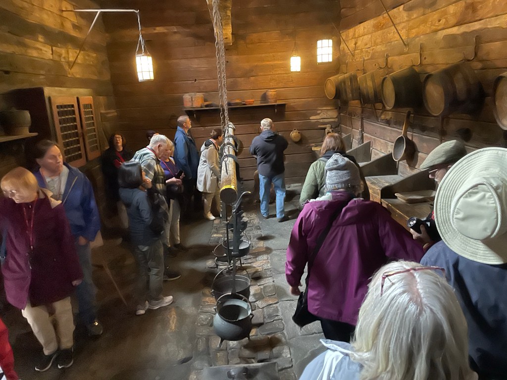 Gathering rooms were typical with the kitchen separate. The gathering rooms were heated by metal stove boxes that had knobs on the top. The highest ranking person could remove these and take into their bed at night.