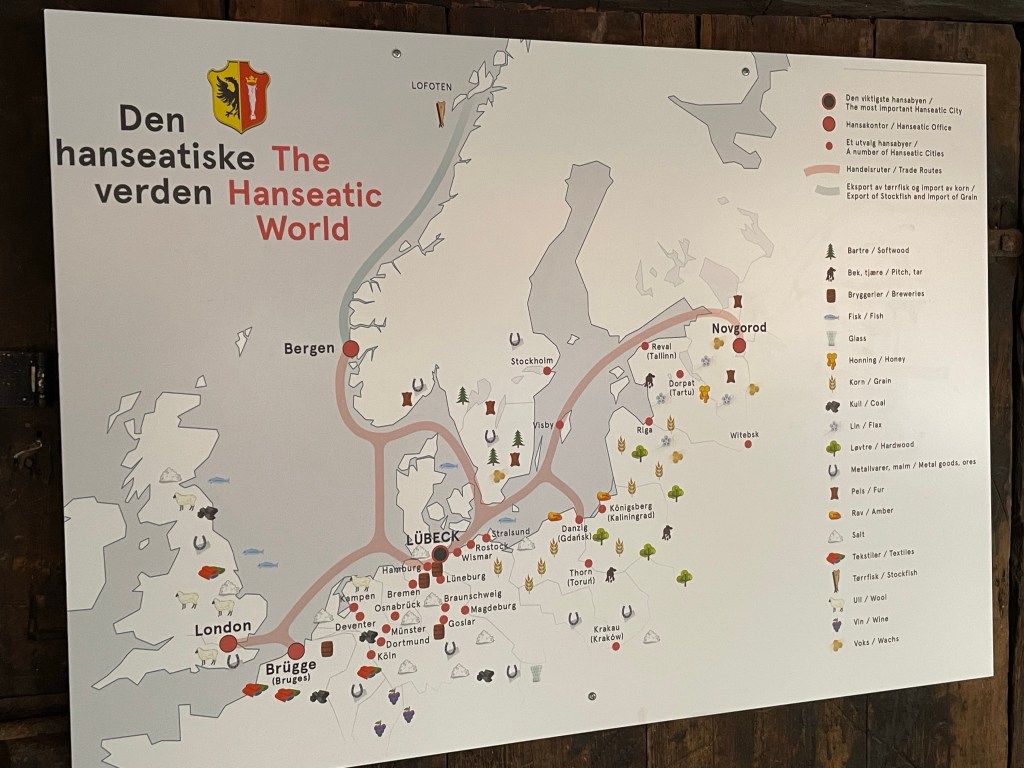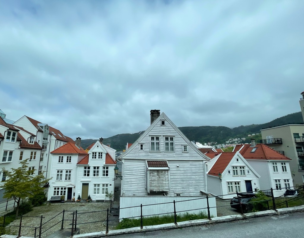 Bergen is surrounded by mountains and the only access is by boat. The climate is tempered by the Gulf of Mexico current. During the Hanseatic period, a settlement of traders was located within the city, a city within the city. This area is call Bryggen and is a UNESCO World Heritage site. The Germans lived here from 1349 to the 1800’s Now a museum, we enter and spend time learning about their life and trade as we walk through the old buildings (restored). Most of the trade was in fish brought from Lofoten, a town north of Bergen.