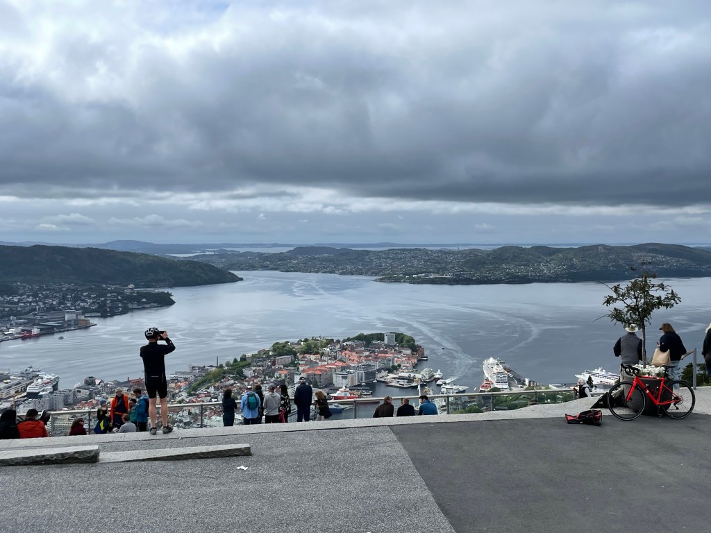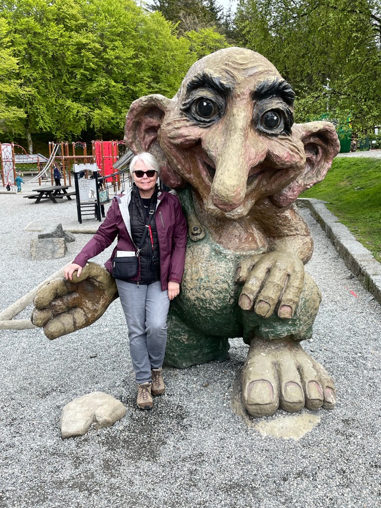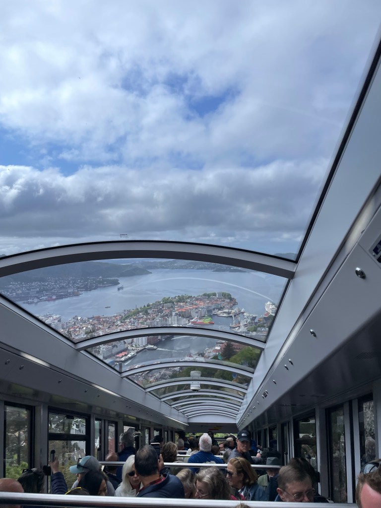 Our final stop is at the funicular railroad to the top of the highest mountain overlooking Bergen. At the top is a great view of the city. There are goats, a playground, the Troll forest, restaurant, and stores. Definitely worth the trip.
