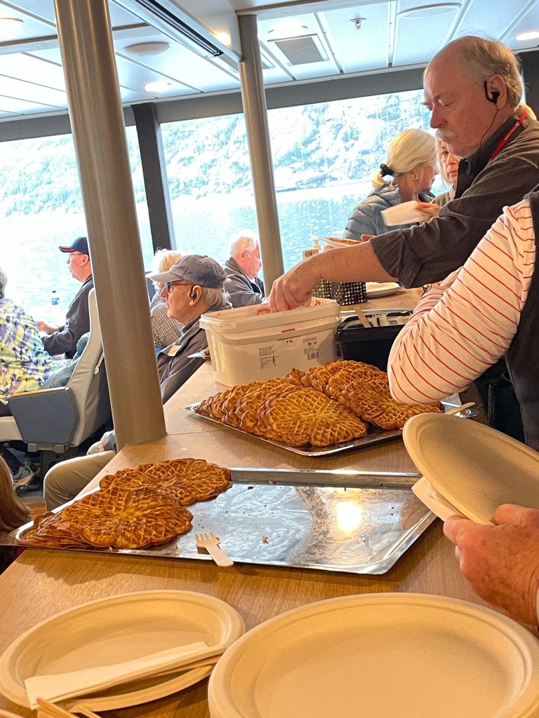 Again, beautiful islands and rock cliffs on either side of these fjords. A very enjoyable cruise watching the scenic shorelines go by. The tour guide talks to us about how the people live in this region.