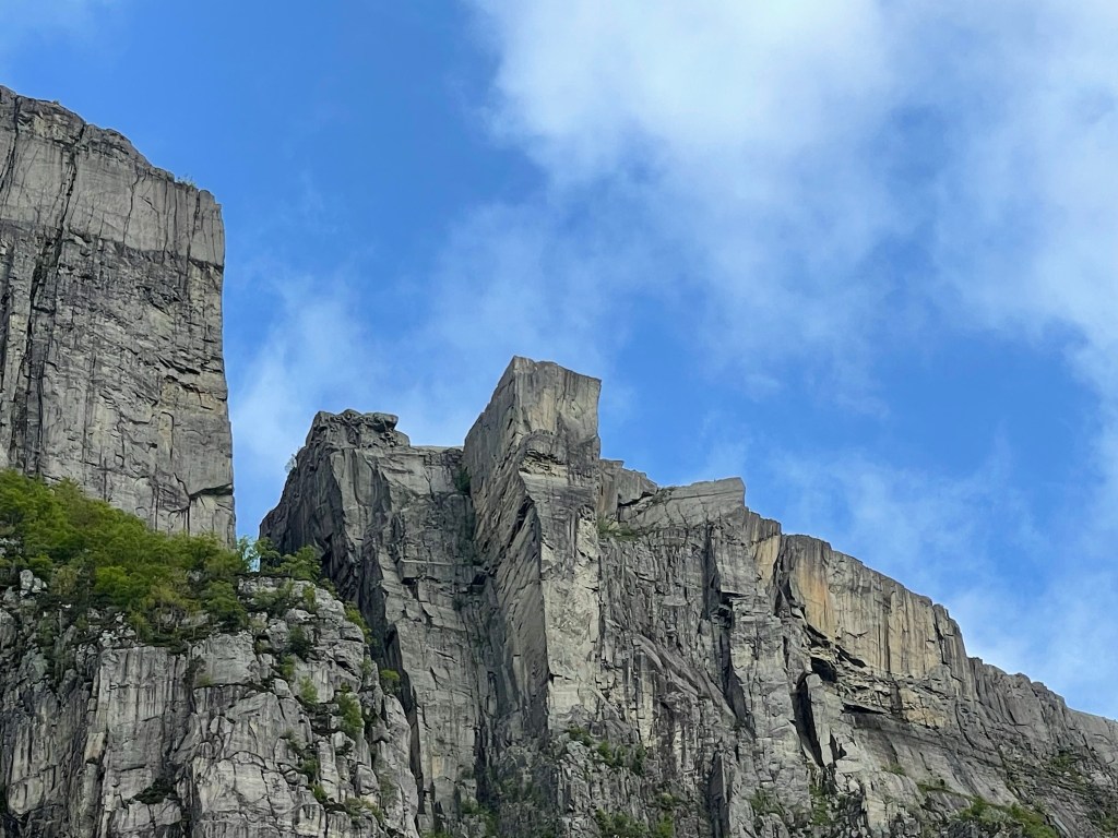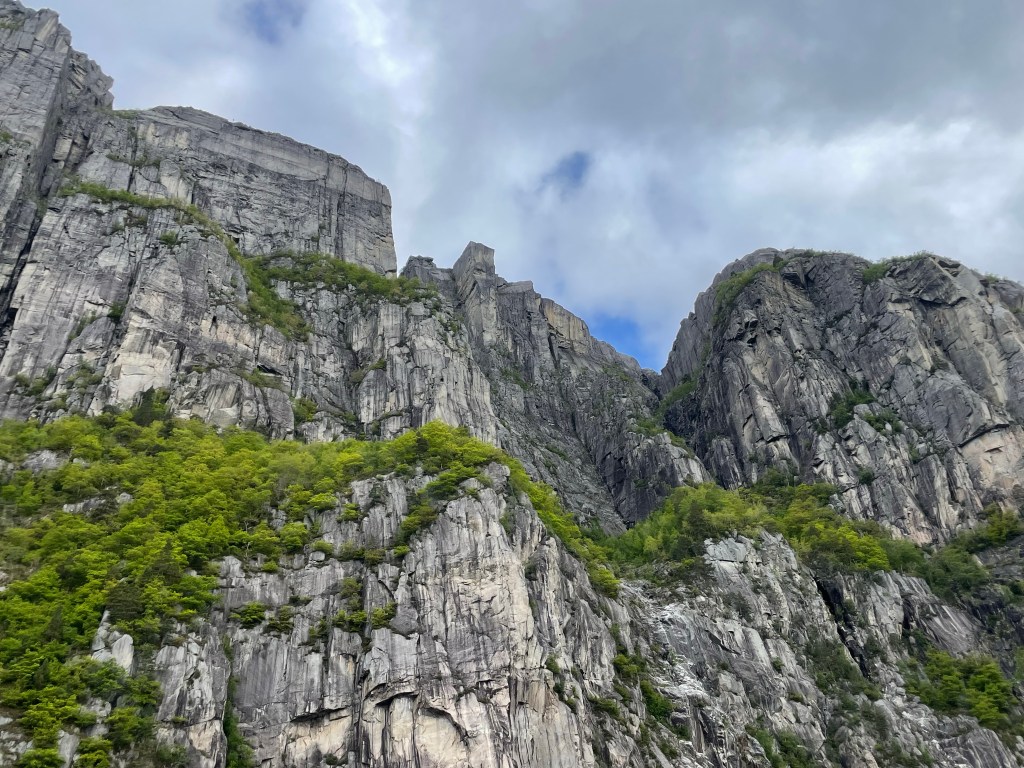 Finally, we see the Pulpit Rock. A famous place that you can hike up to. This was made even more famous because it was in the Mission Impossible: Fallout movie with Tom Cruise. A memorable scene was on top of Pulpit Rock. The funny part is that the scene is suppose to be taking place in the Film somewhere in India, not Norway! The view of Pulpit Rick up from the ferry boat in the water is unimpressive. We know it is really a huge rock but it appears so small!