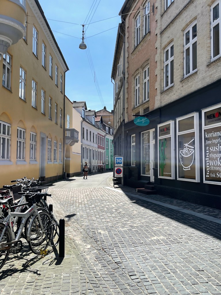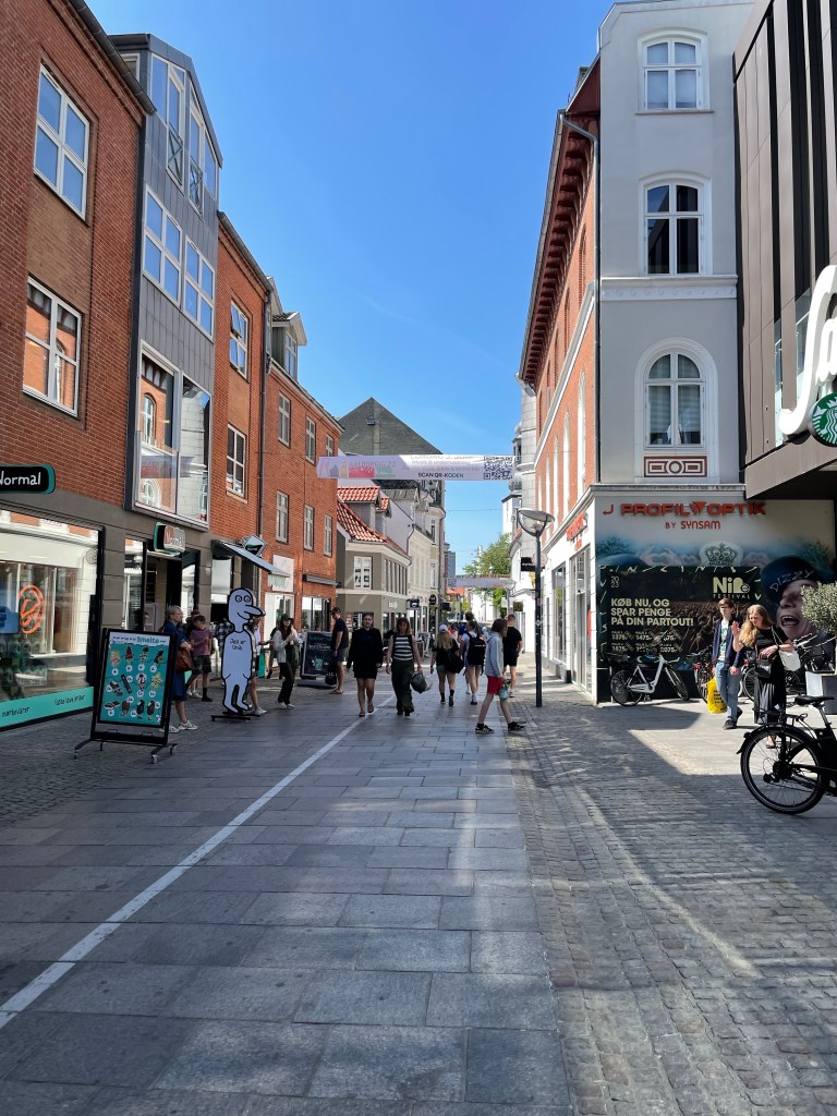 We spend the next hour or so wandering down the oldest street in Aalborg – 800 years old. Lots of buildings, some from the early 1600’s and some from a couple years ago. The shops and restaurants are mostly closed.