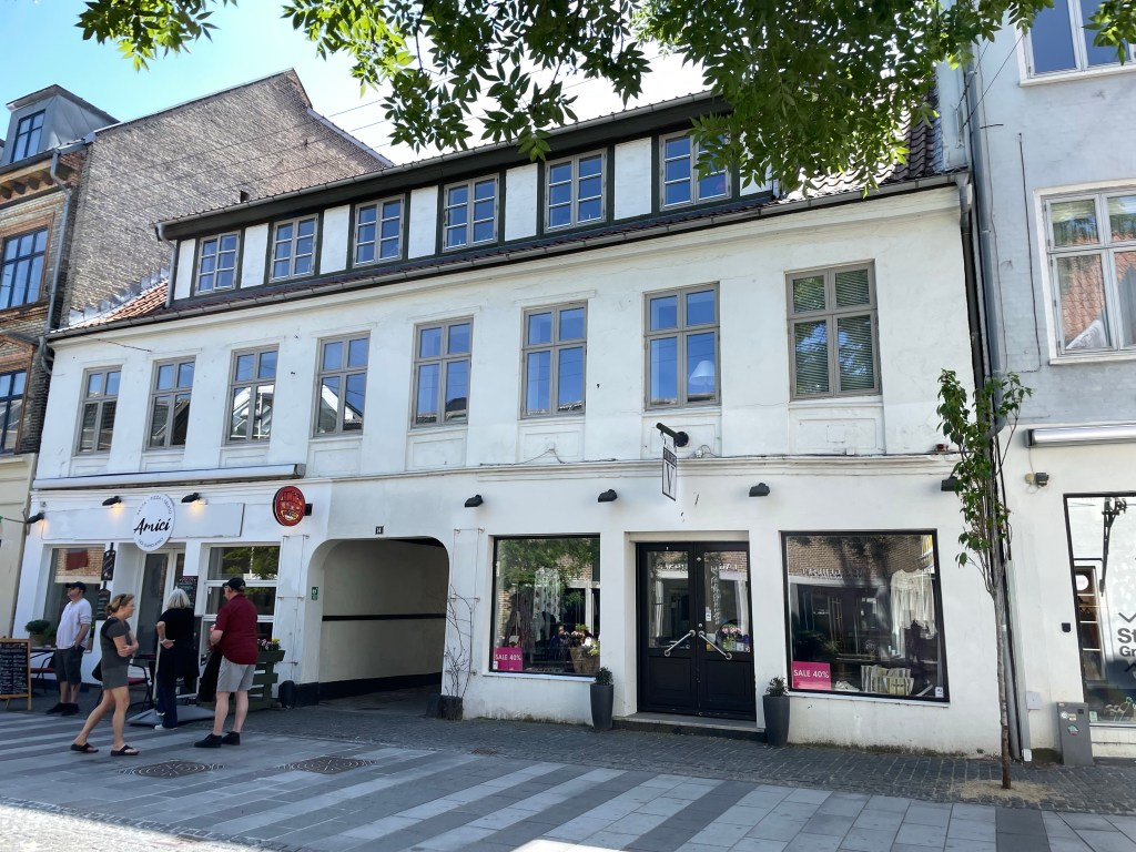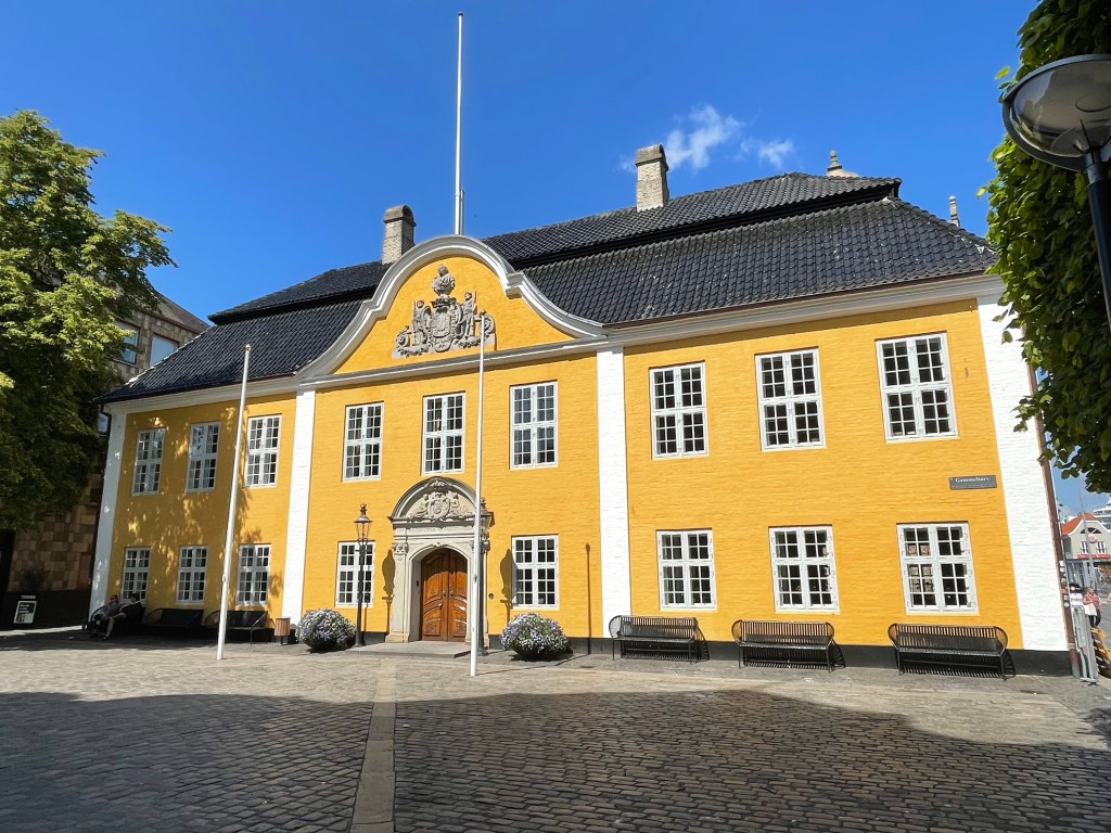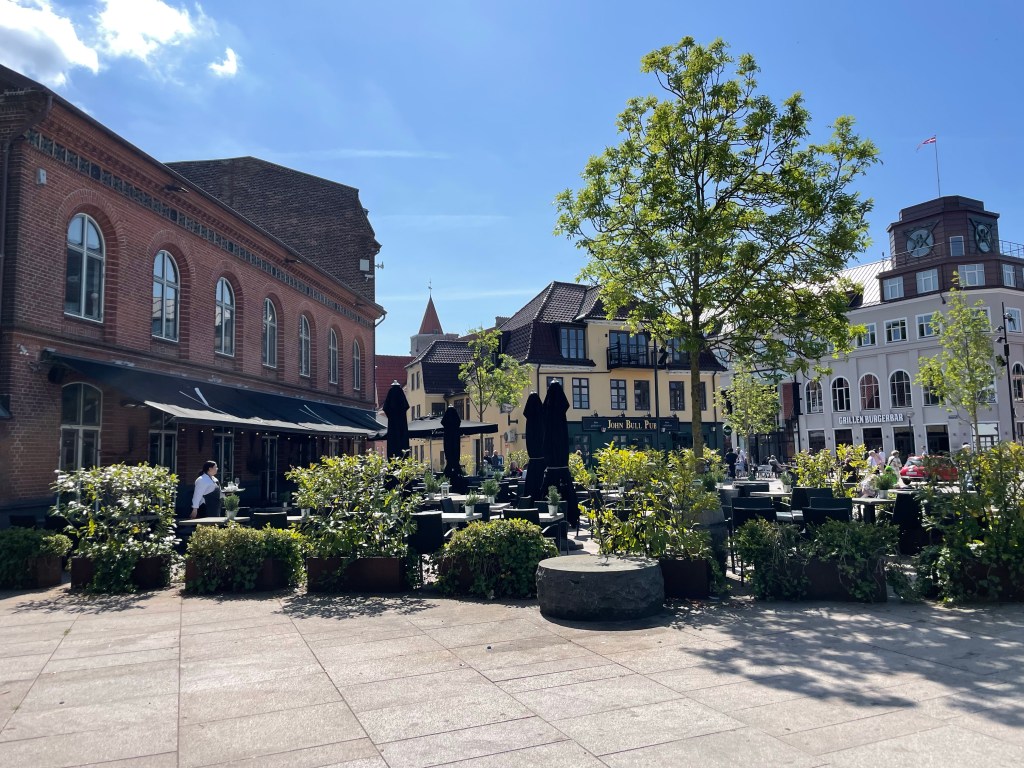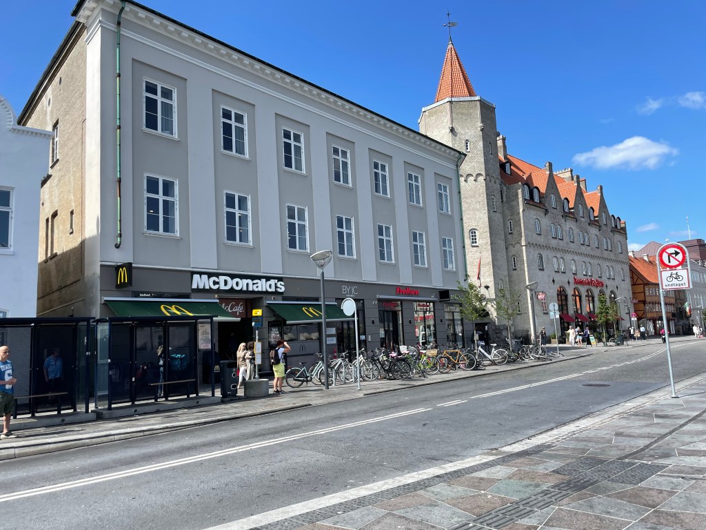 We stop in front of the old city hall and town square. The yellow building featured at the beginning of this blog post. Next door to this building is the oldest house in Aalborg. Built by the richest man in 1620 and when he died in 1640, no one could afford to live there so it was turned over to the government who placed a pharmacy there which was the Swan Pharmacy from 1665 – 2014. At which time it became a building with various shops. Another square is just across the street and in the 1600-1700’s the street use to be a river. And look a McDonalds is just up the street.