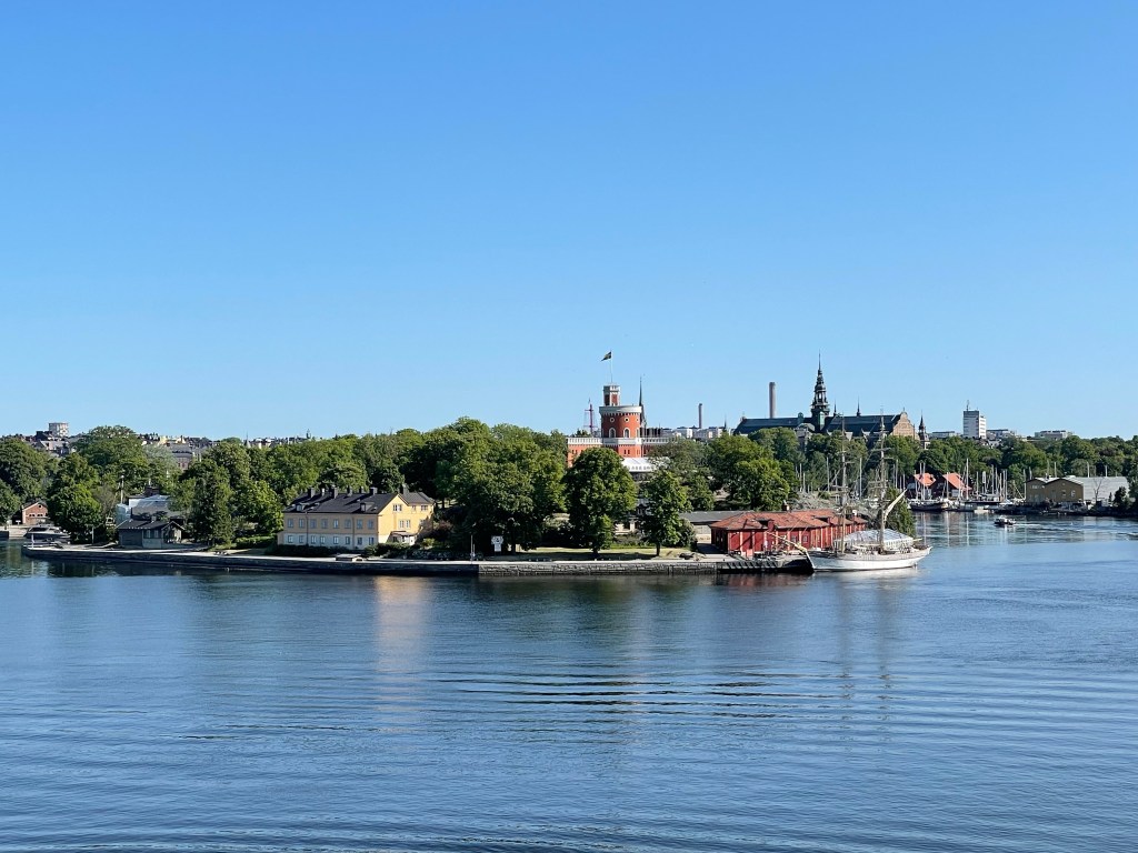 We sail early morning into the fjord that takes you to Stockholm. The sun rise is 3:30 AM and bright and sunny. It has been a bit more difficult to sleep once that sun is up. So around 5 AM, I’m up and out watching the ship sail in.