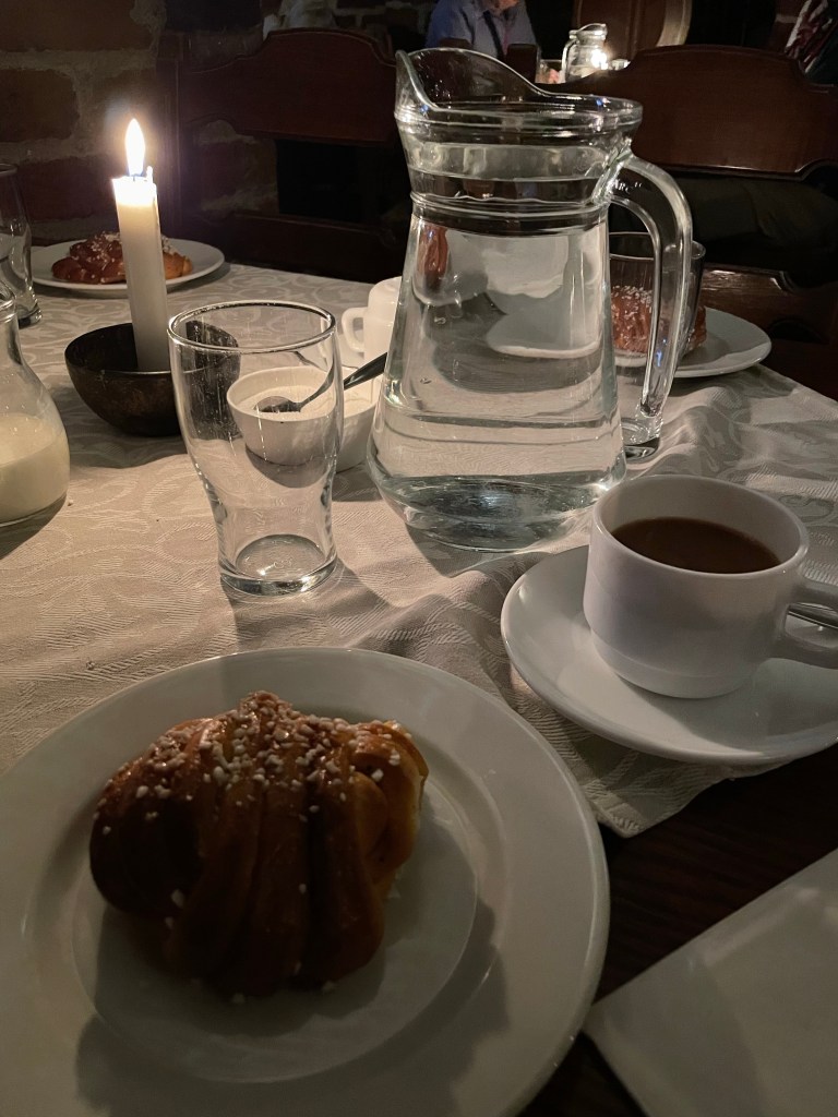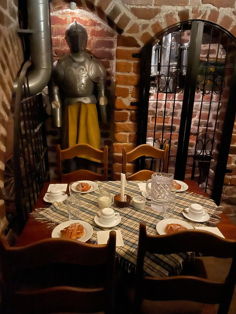 In the afternoon we take a tour that also stops in Old Town for a cinnamon bun and coffee in one of the older restaurants basement, at least three levels down stairs; is it really a dungeon!?