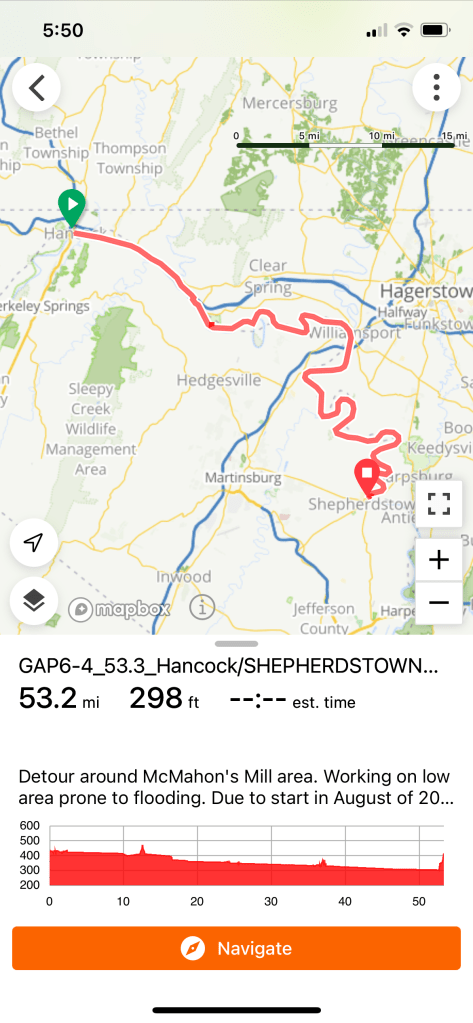 We were told if we see someone stopped on the trail looking distressed, we should stop and ask if they need help. I stopped for this man who looked distressed and was just standing, not even pushing his bike. He told me he was okay except his feet hurt. He was coming from Pittsburgh and going to Washington DC. He then went on to tell way more information than I needed to know so I determined he was “okay” and I could continue. He let me take his picture. Does anyone know this person?