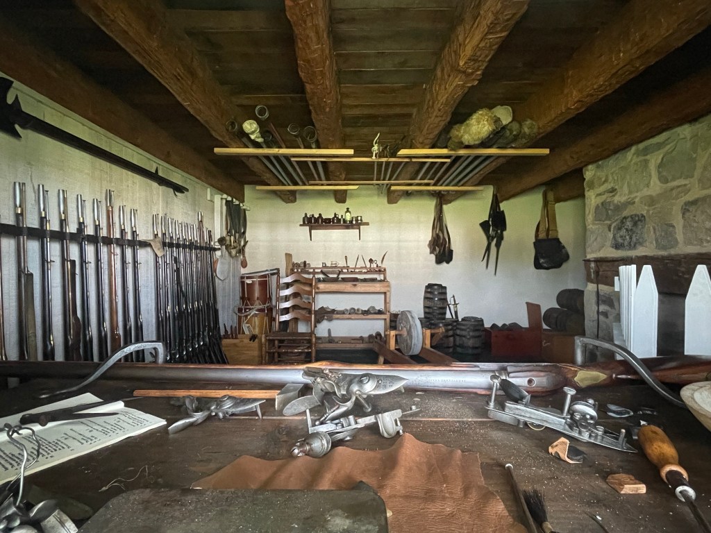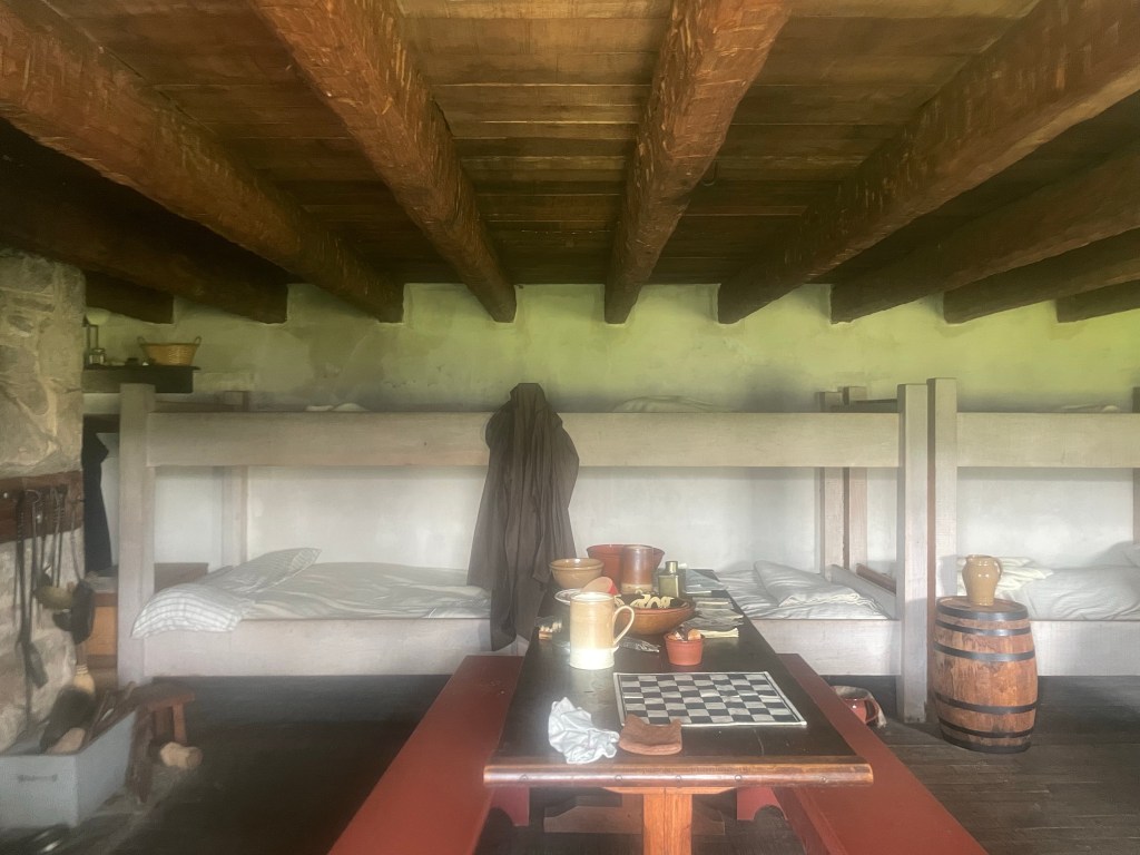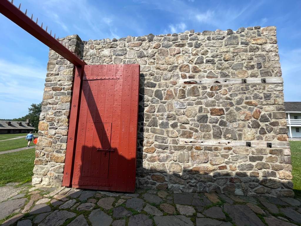 Once we arrive at Ft. Frederick and unload bikes, we walk over to explore the fort. This fort is one of the few made of stone not wood. It was built before the French Indian wars, survived the Revolutionary War and the Civil War and then was purchased and held privately until the state of Maryland purchased it. We couldn’t get in to the soldier’s barracks but I was able to get pictures through the windows. Well-done preservation of history!