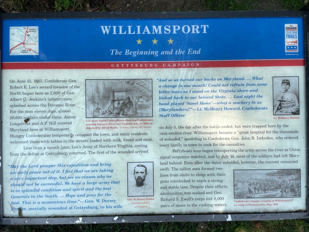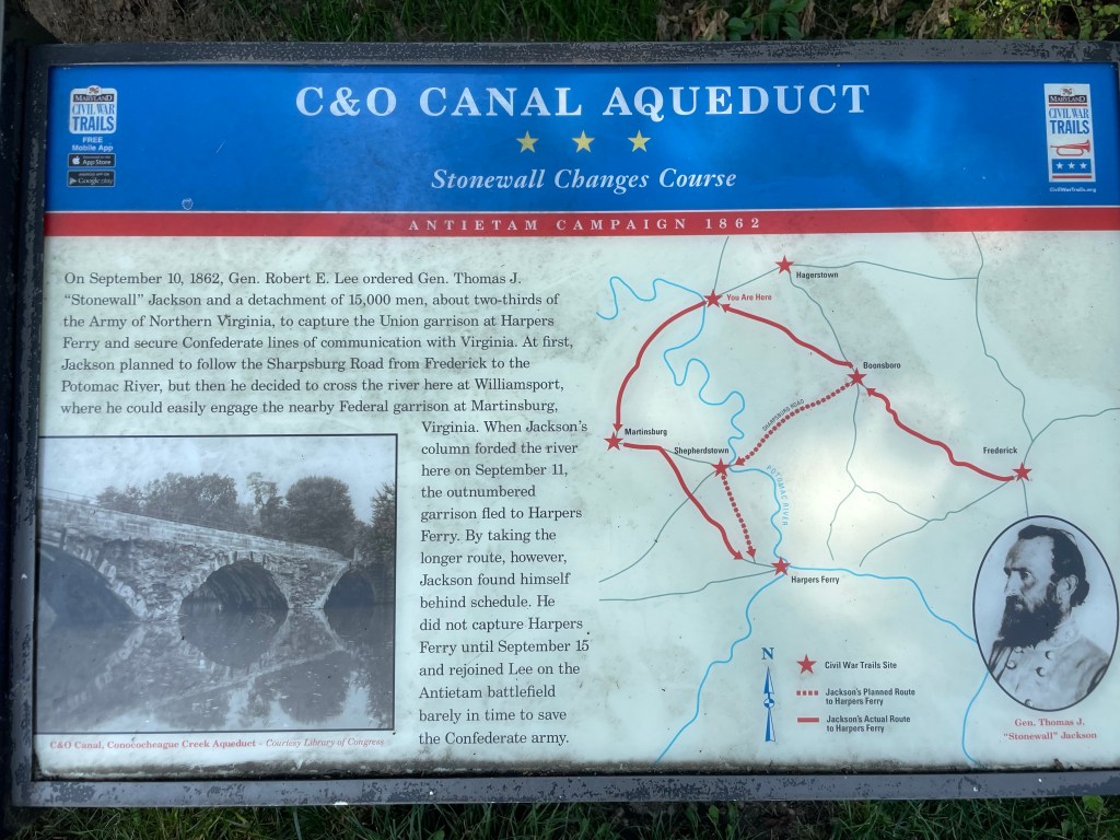 Our stop for lunch is just on the other side of the Conococheague Aqueduct in the town of Williamsport. Lots of history here on plaques just past the aqueduct.