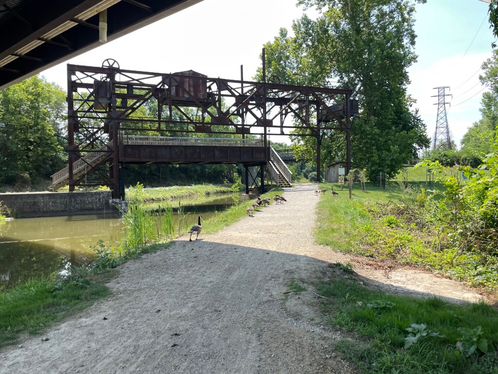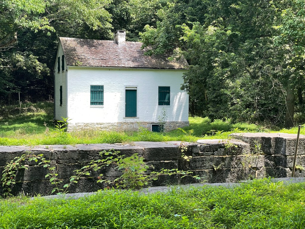 Now its time to get back on the bike and ride. We follow the towpath trail along the old canal bed. The canal was closed for good in 1924 due to major flooding and the increase use of railroads to transport goods. So imagine, after 99 years, there is no water in the canal except in certain areas and some of the trees along the canal towpath look like they could be 99 years old! We continue to see the locks and the houses. In one section there are 4 locks in a row. It is also nice in these areas along the path because we get to go downhill just like the locks helped the barges go uphill.
