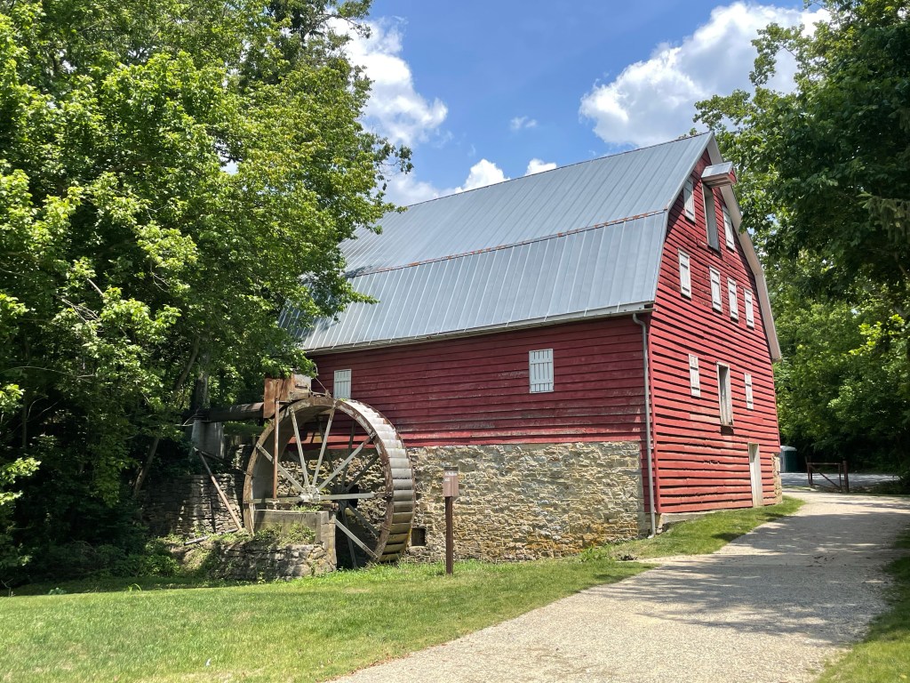 Continuing on the trail and reaching the turn off to the hotel. To get there, you have to take a winding trail up the hill to the main road and on to the sidewalk on the bridge that crosses the Potomac River to the Bavarian Inn, our hotel for the night. We are now in Shepherdstown, West Virginia. A plaque explains why Shepherdstown is another historic site. I was surprised with the Chicago connection.