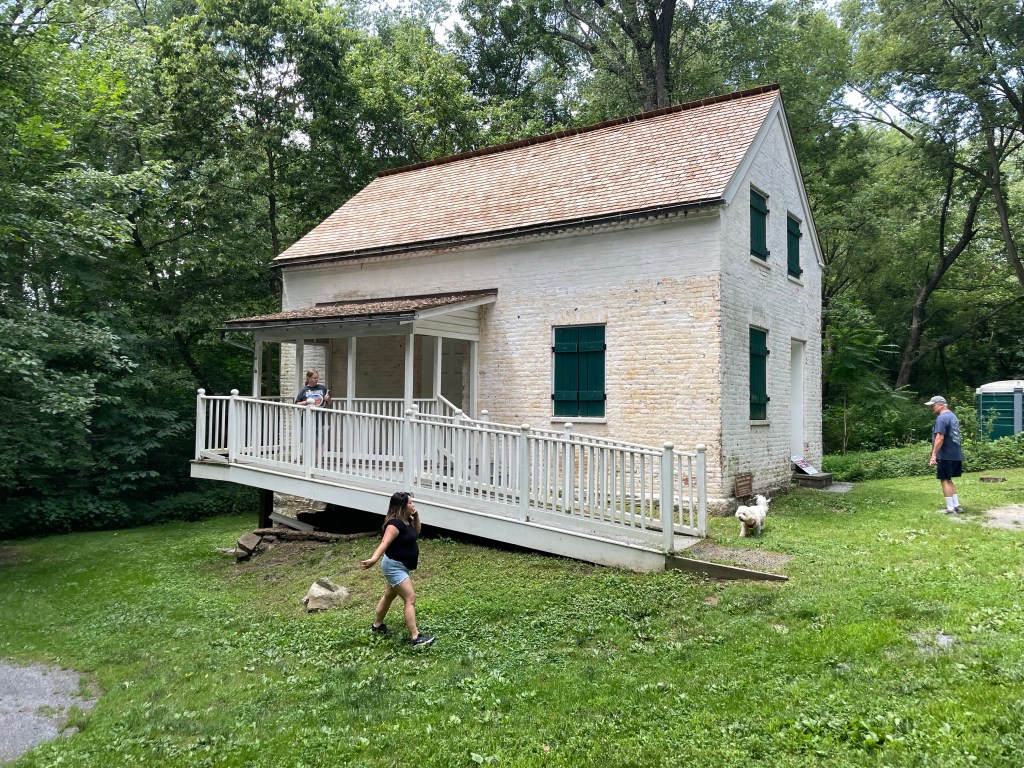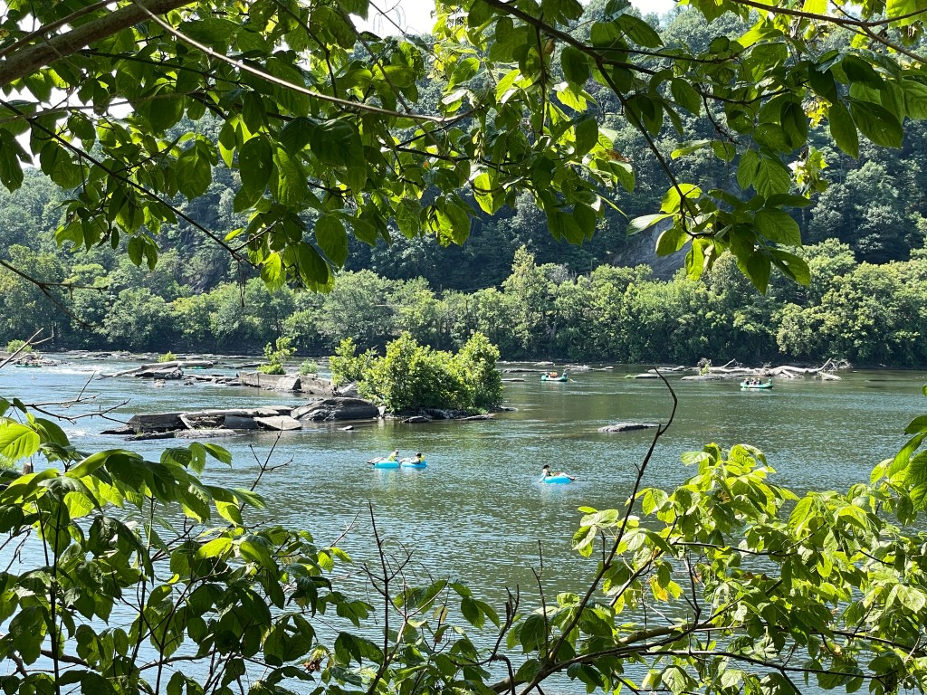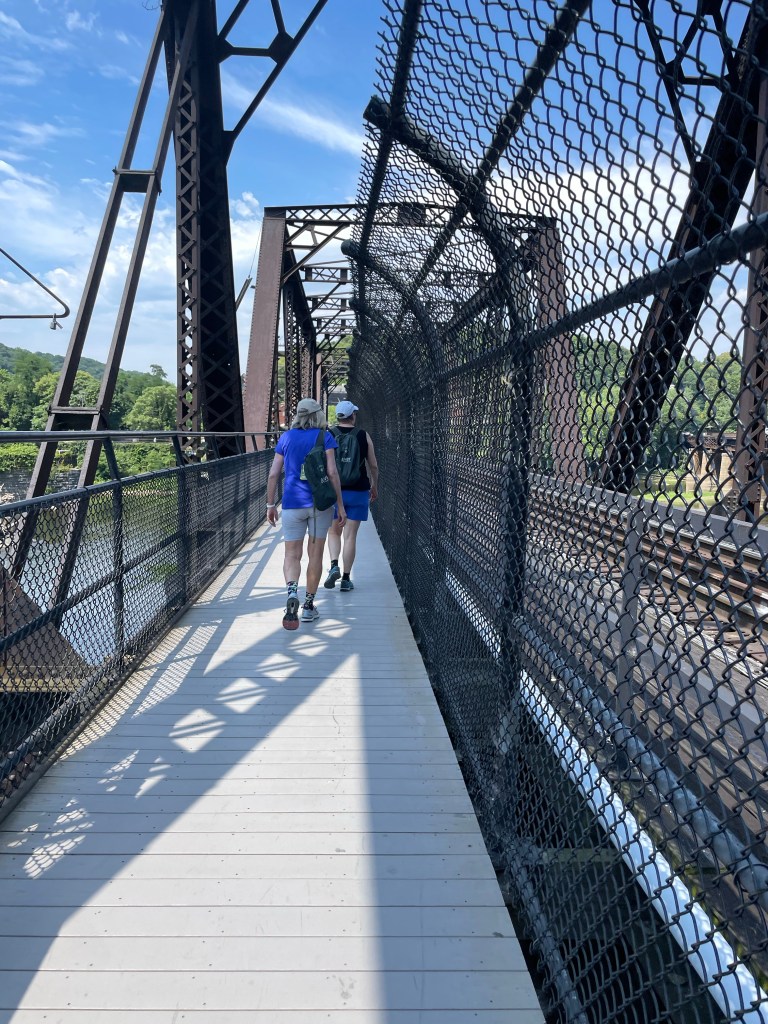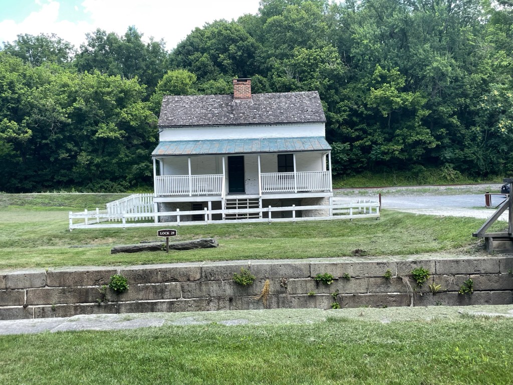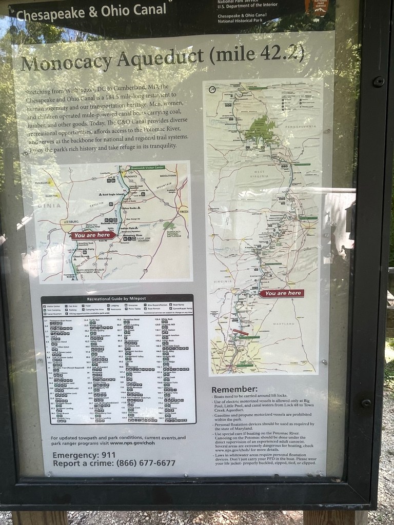 Back on the trail after exploring Harper’s Ferry, we meet for lunch at the van. Leaving the lunch stop, we continue to follow along the Potomac and the canal. On the Potomac you can see people enjoy their summer by cooling off in the river. The temperatures today are in the 90’s – quite hot!