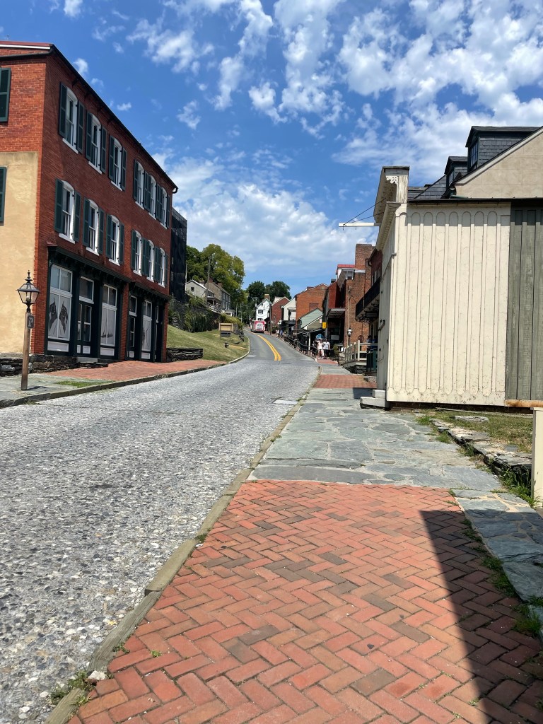 This part of the trail is cinder and easy to ride through the tree canopy, continuing along the old canal on one side and the Potomac River on the other. First stop, Harper’s Ferry. If you have not been here, it is an amazing place with lots of history. Now, if you are Megan, her comment was, “History, blah, blah, blah – not interested.” Completely understand many people aren’t that interested…my family, we love it! And having never been to Harper’s Ferry, we spend the time reading the plaques and enjoying learning about this town that existed and was in the center of so much of our country’s early history. Remember the John Brown incident with the Armory? And did you know that Lewis & Clark obtained their provisions in 1803 at Harper’s Ferry? Plus the Appalachian Trail crosses here! So much history, Megan!