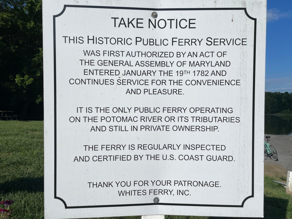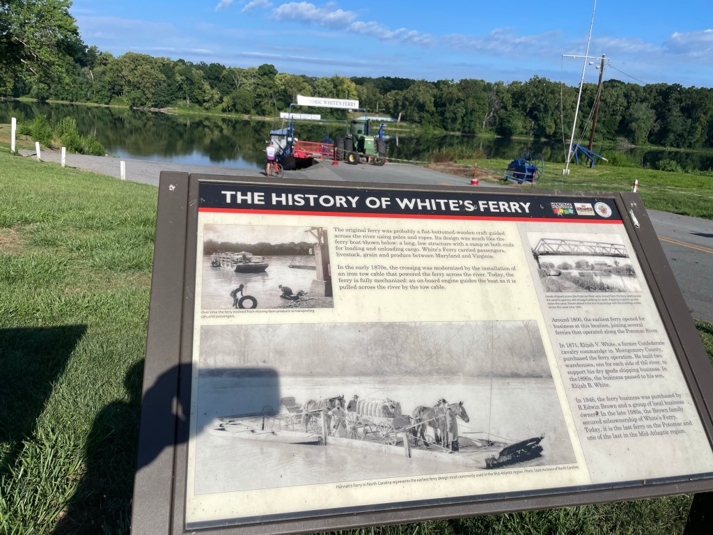 Our stop at White’s Ferry allows us to see this historic place. Unfortunately, the owners on both sides of the river are involved in a property and price dispute which has resulted in the ferry no longer running after so many years.