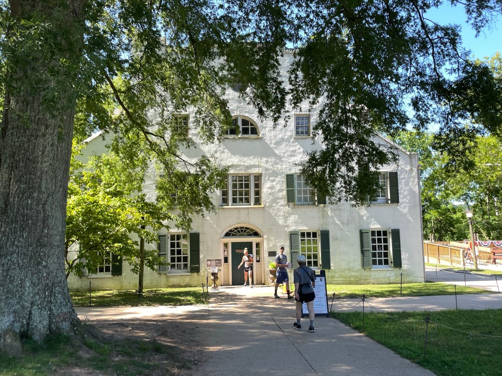 A lovely visitor center and stop is at Great Falls. This area is where the Potomac River drops 41 feet and required six locks to allow boats to continue. The Great Falls Hotel and Tavern was a destination in the 1870’s and now is a National Park visitor center. This is also where mules are available (led by a National Park ranger) to let you meet the hard working mules of the C&O. A canal boat sits up in ‘dry dock’ to provide an opportunity to understand what the mules had to pull on the canal.