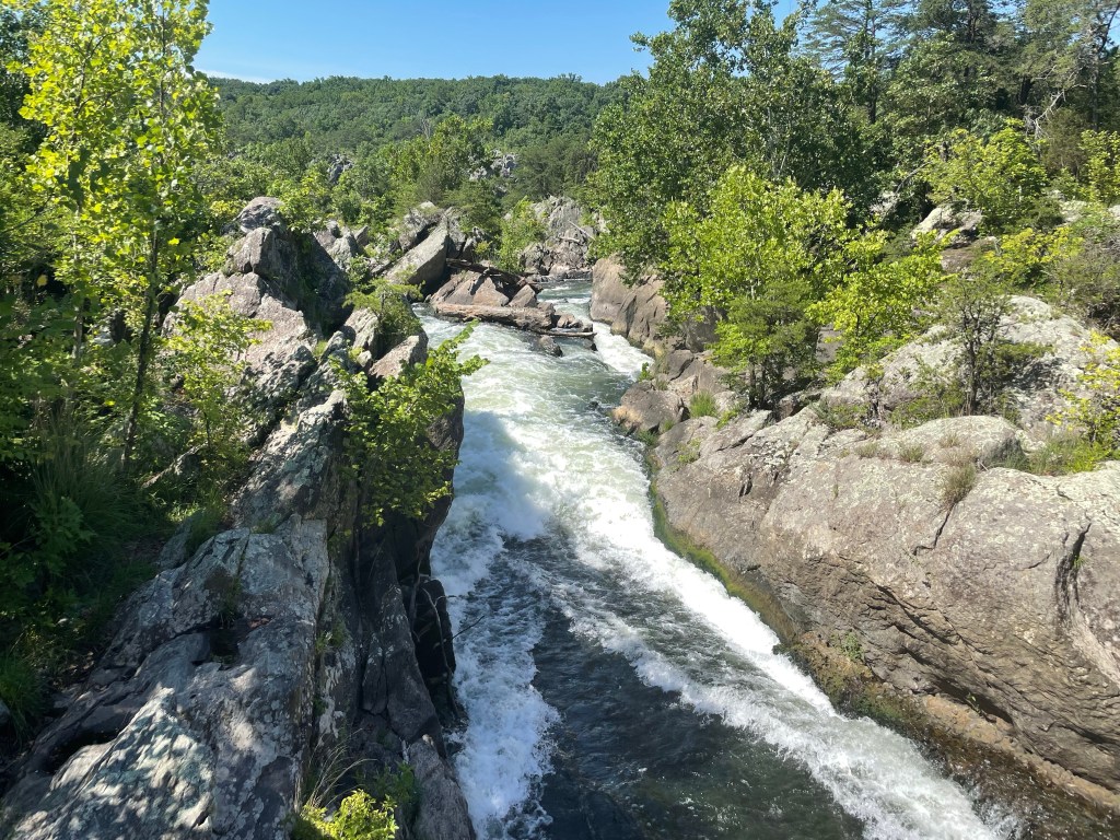 Next stop is the Great Falls. The river is wide here and so there are several falls sections. With our bikes parked, we walk the boardwalk to see the falls. There are two smaller falls and then you reach the larger falls.