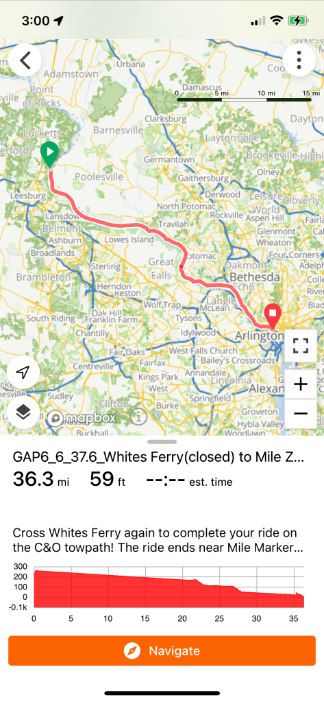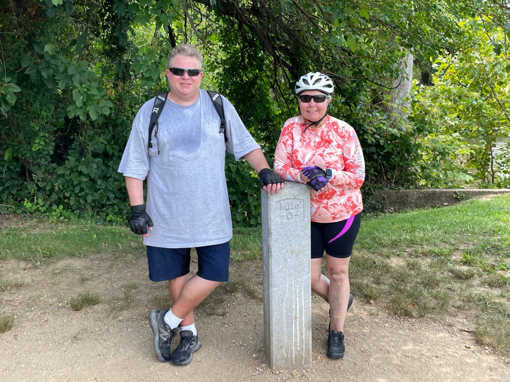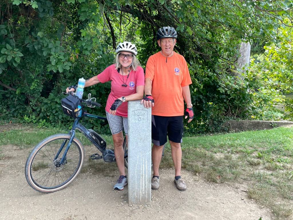 Breakfast at the hotel with an early departure – 7 AM. Load up the van and drive back to the where we left the path yesterday at Monocacy Aqueduct. This is Day 6 and the last day of our biking adventure. Everyone is excited to complete this major ride – the Greater Allegheny Path and the Chesapeake & Ohio Canal Towpath – Total 312.7 miles!