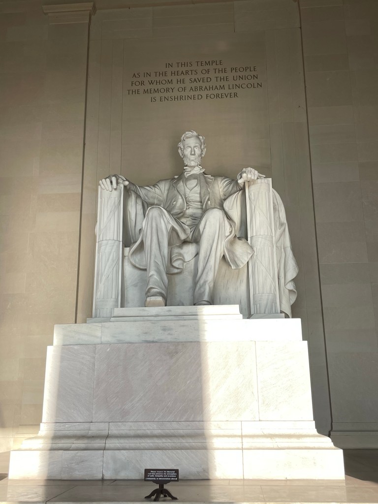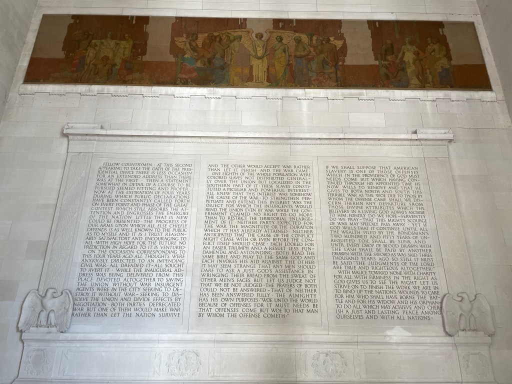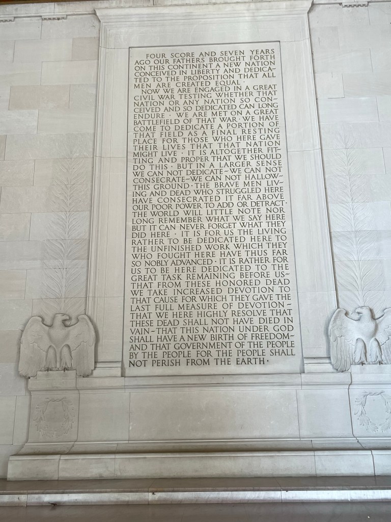 Having been here before, it still impresses me. Inside the monument is the statue of Lincoln but also the Gettysburg Address and Lincoln’s 2nd Inaugural Address. The 36 columns outside are for the 36 States that were States when Lincoln was president. Outside on the top are the 48 States names – dedicated in 1922 – so no Alaska or Hawaii.