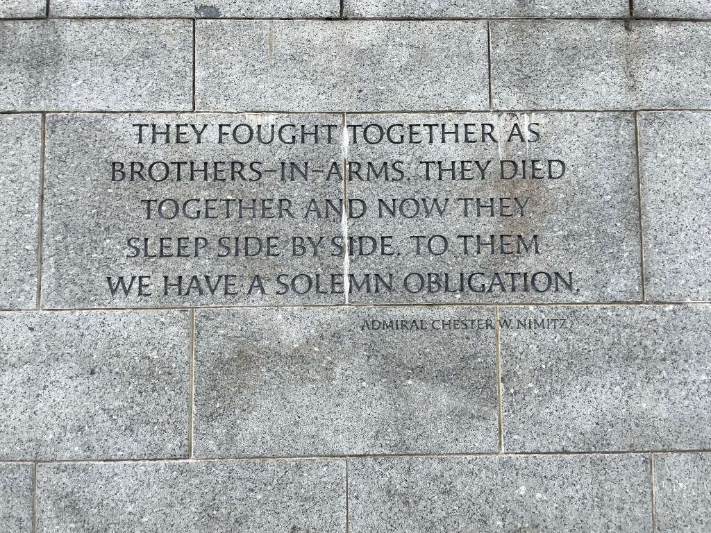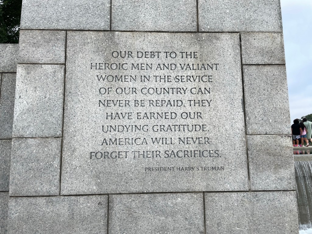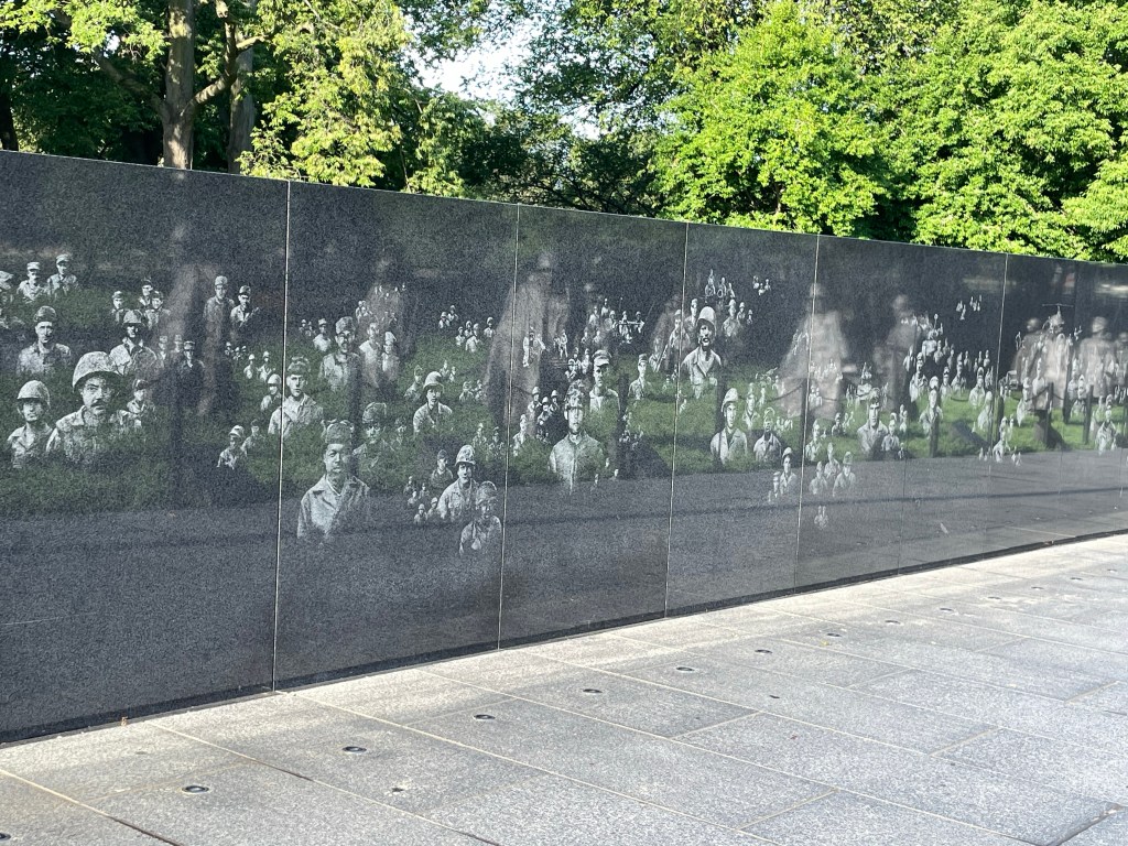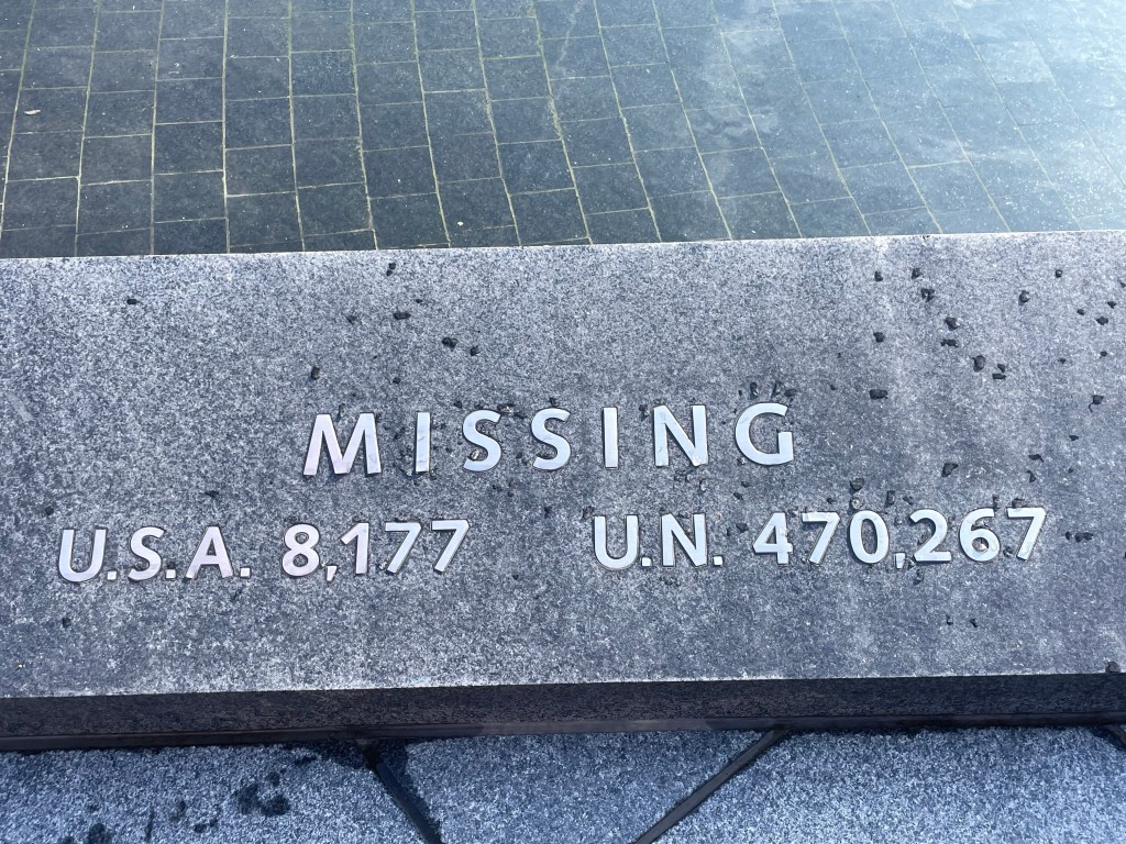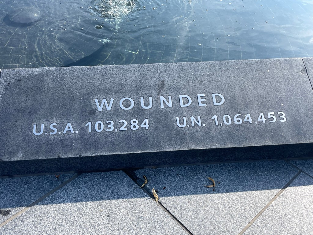 Our next stop is the Korean War Memorial. Last time my family and I were in DC, this memorial was only a few statues and still under construction. Finally dedicated in 2022. Wow! An amazing tribute of remembrance of the USA and many other members of the United Nations citizens that fought and gave their lives in this war. Here is where the phrase – “Freedom is not Free” is emblazoned in granite. Remember.