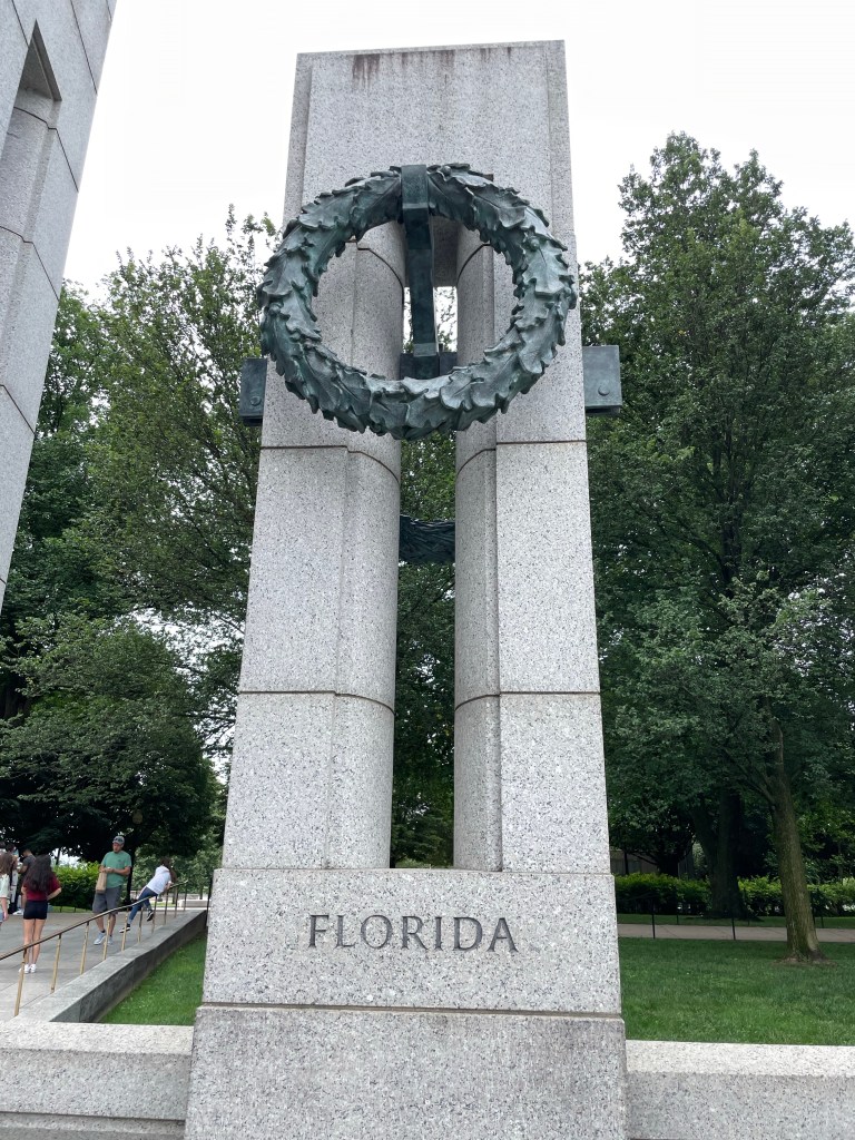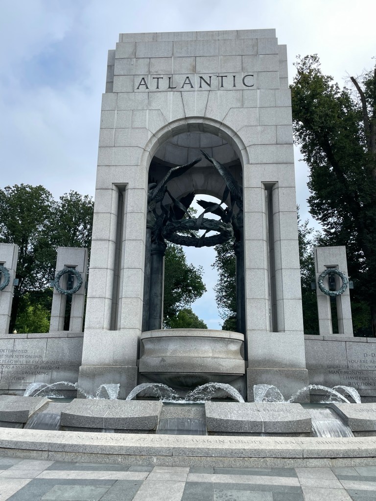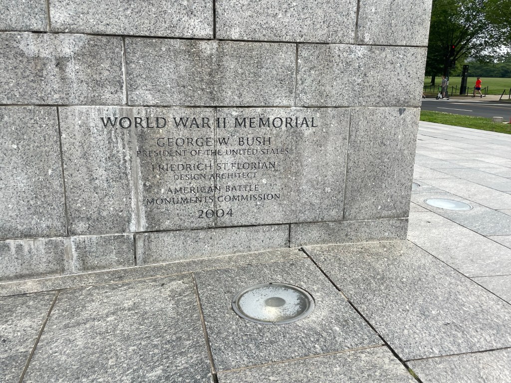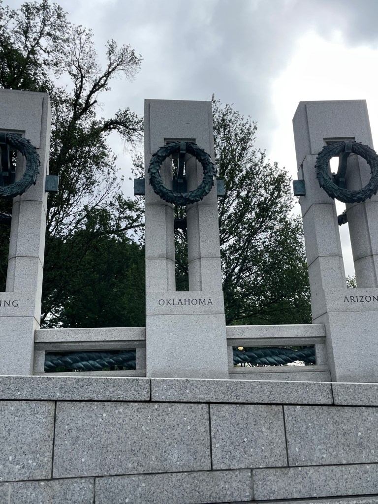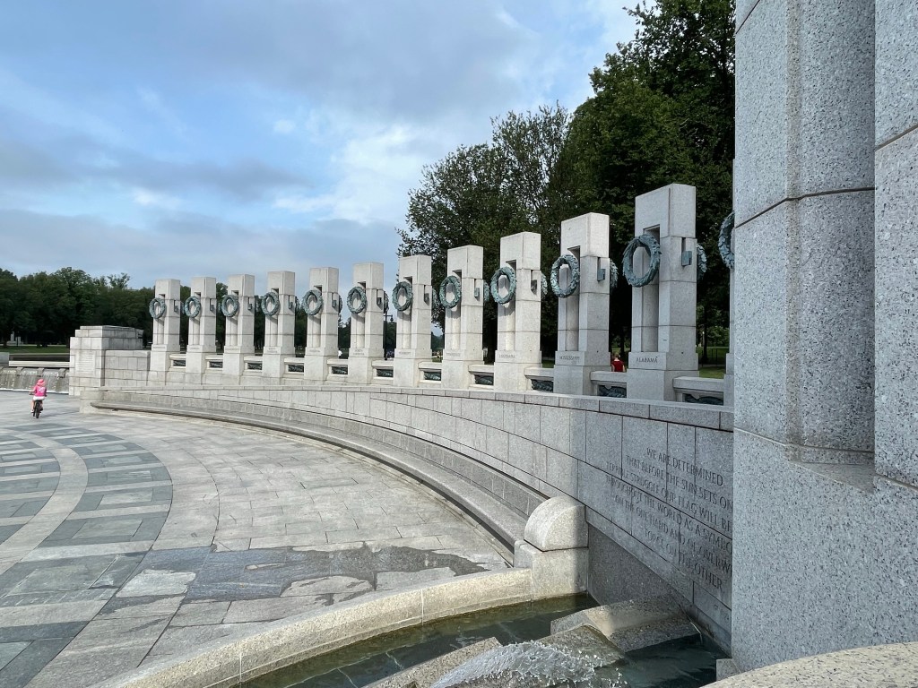 The WW2 Memorial – lots of pictures. At each end there is a pavilion with a medallion on the floor and eagles flying over head. They are labeled Atlantic and Pacific with pillars and wreaths for each state. The fountains in front of the Atlantic and Pacific pavilion include the names of the various regions where the war was fought. At the end looking towards the Lincoln Memorial is a wall with Gold Stars. Everything is done with such meaning and inspiration, you will be moved. Well-done and deserving memorial to those who served and gave their lives to the cause. The various inscriptions around the plaza are perfect for reflecting on what this war meant to our country.