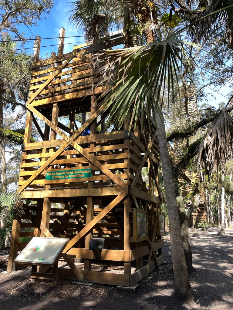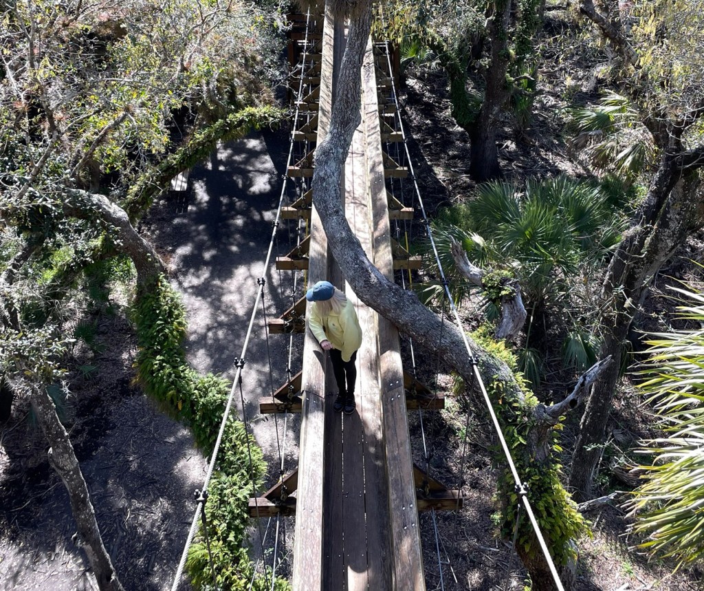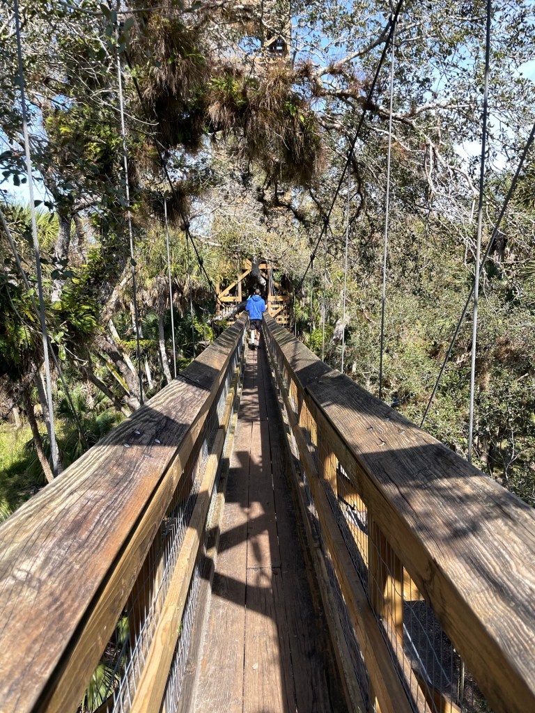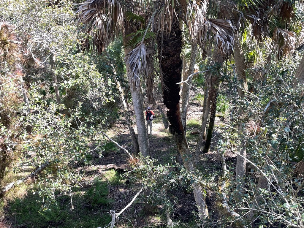 Later on the trail we come to a bridge and tower built by volunteers to enable you to see over the hammock. Fun to climb up and get a bird’s eye view.
