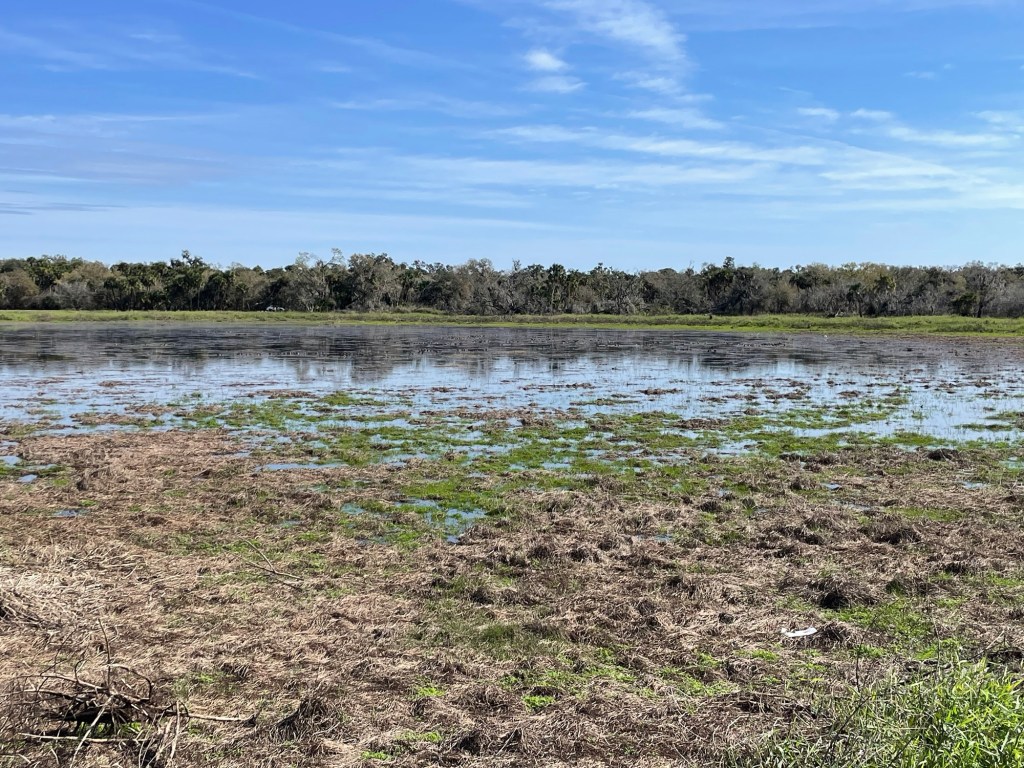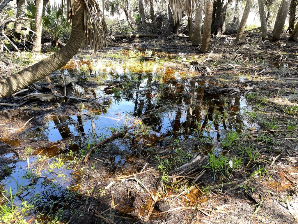 There are also a few ponds along the trail, part of the wetlands. This area floods during the rainy season filling up the area with almost 3 feet. You can see the remnants of the damage the hurricane (over 16 months ago) did to some of the trees.