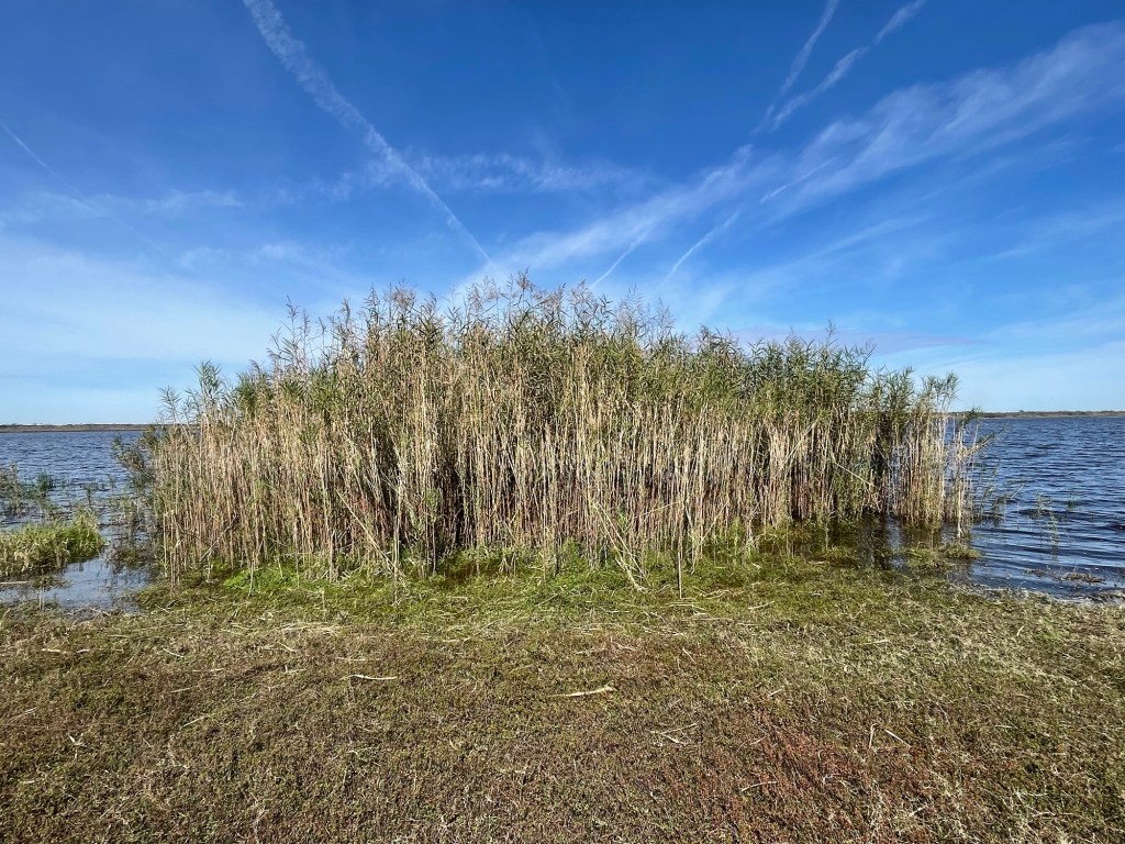 Back on the scenic drive (7 miles!), the road winds through the wetlands. We stop at the birdwalk. Not much to see on a cold mid-day. Some ducks huddled together is about it. Again, worth coming back when birding season is best.
