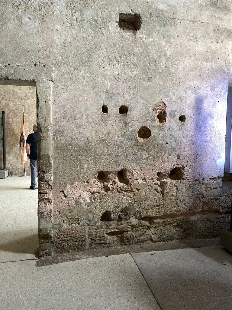 The coquina brick construction of the building was sourced from a quarry across the Matanzas Bay. This area is now protected as part of St. Augustine Beach State Park. Here’s an up close look at the wall.