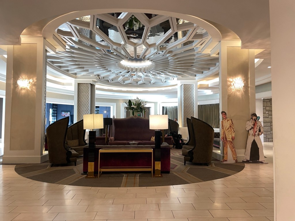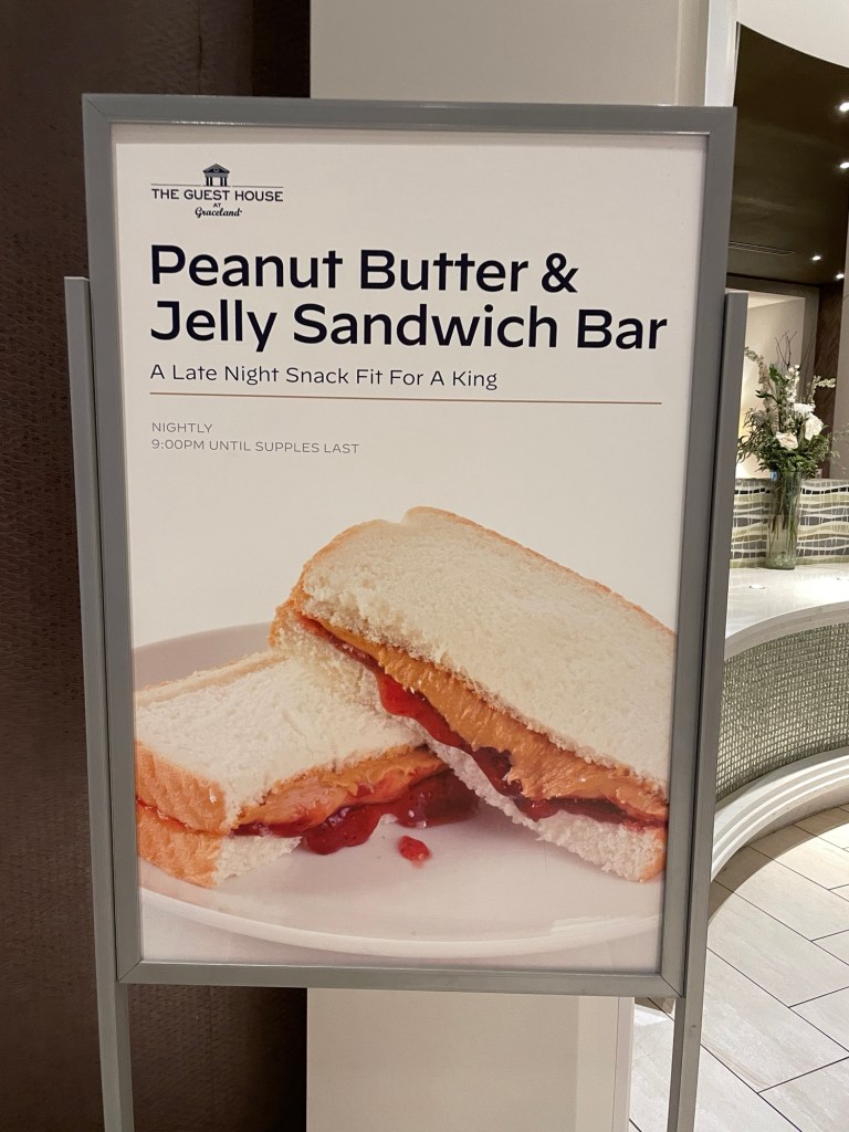 The hotel we are staying at is right next door to Graceland. A shuttle ride from the airport and we are at ‘The Guest House at Graceland.’ A very nice, huge (450 room) hotel away from the downtown but not that far away. An entertaining hotel with Elvis music playing everywhere, TV in the room with Elvis music and movies, a theatre showing Elvis movies every night, and at 9 PM a free Peanut Butter, Jelly and Bananas Bar. The hotel is reasonably priced for the quality of the stay. EP’s Bar and Grill had some good BBQ too to satisfy these hungry travelers.