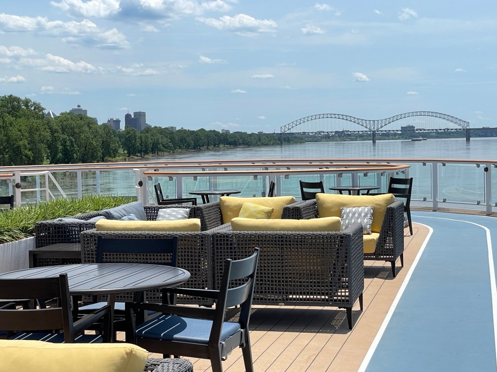 Writing this early on May 30 as the cruise ship the American Serenade rolls down the Mississippi River. It’s a beautiful ship only one year old. 150 passengers on this trip and we sailed through the night from Memphis heading to Vicksburg to dock around Noon. I’ll be able to get a better picture when we dock later today. This picture is when we were boarding.