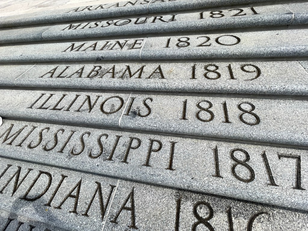 The 48 steps that lead up to the building each have the name and the date of each US State at the time – 1932.