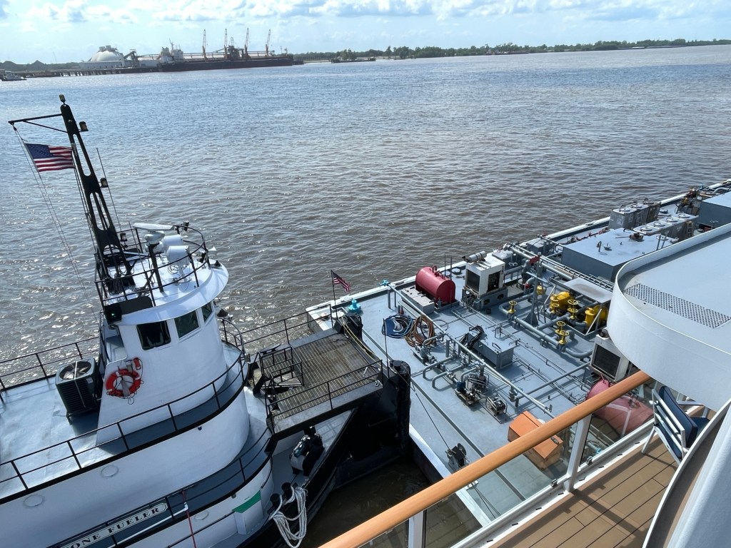 Our ship sailed away at 1 AM and sailed to where we dock this morning at Vacherie. From the ship, Vacherie seems like a very small town with a Ford dealership, a church, and sugar cane fields. The weather is now steamy, hot Louisiana style.