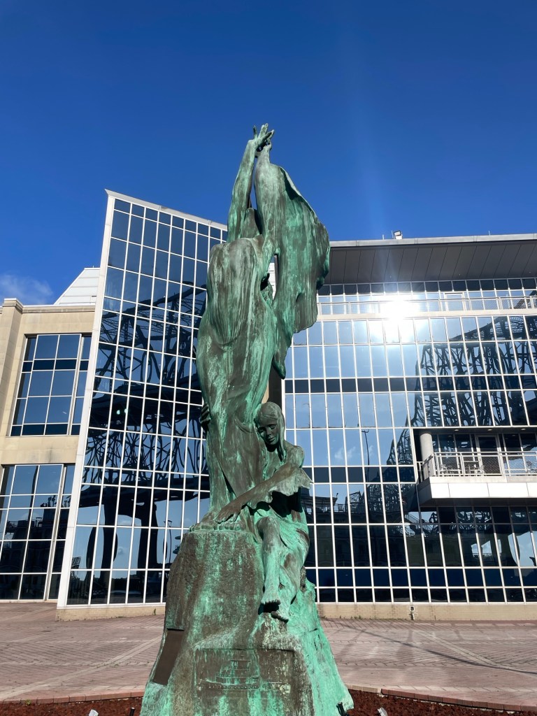 As we walk to the motorcoach, a large statue entitled Mother River sends us on our way.