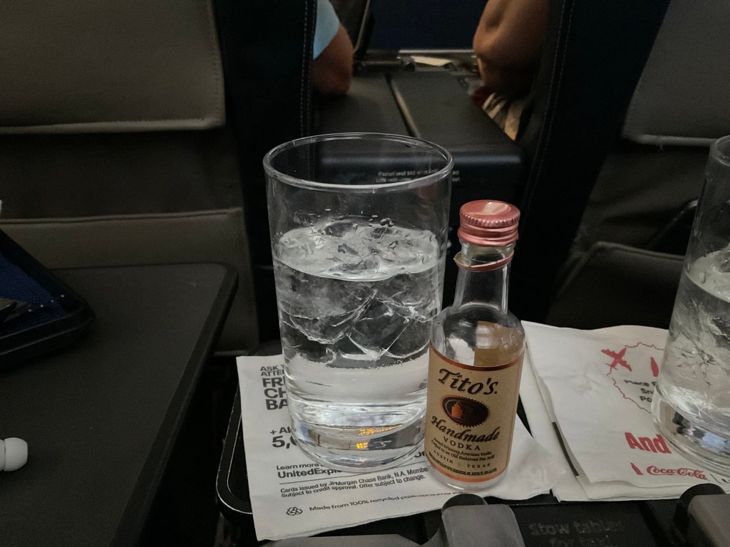 Our flight on United to Chicago was on time and even arrived early. We actually had food served to us in First Class. The amusement was watching the flight attendant (who wore an apron that said her name was June Cleaver) attempt to open the tiny Titos bottles. She eventually came to us to ask for help. LOL