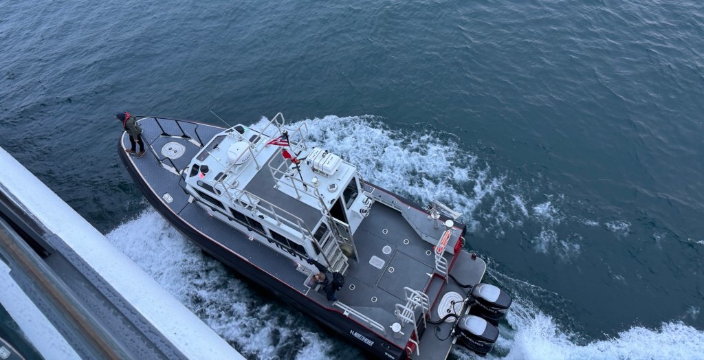The ship is scheduled for transit to begin at 9:00 AM. We will be at the bow to watch the ship go through the locks. The pilot ship pulled up next to the ship at 7:20 AM to board the pilot who will guide us through the locks.