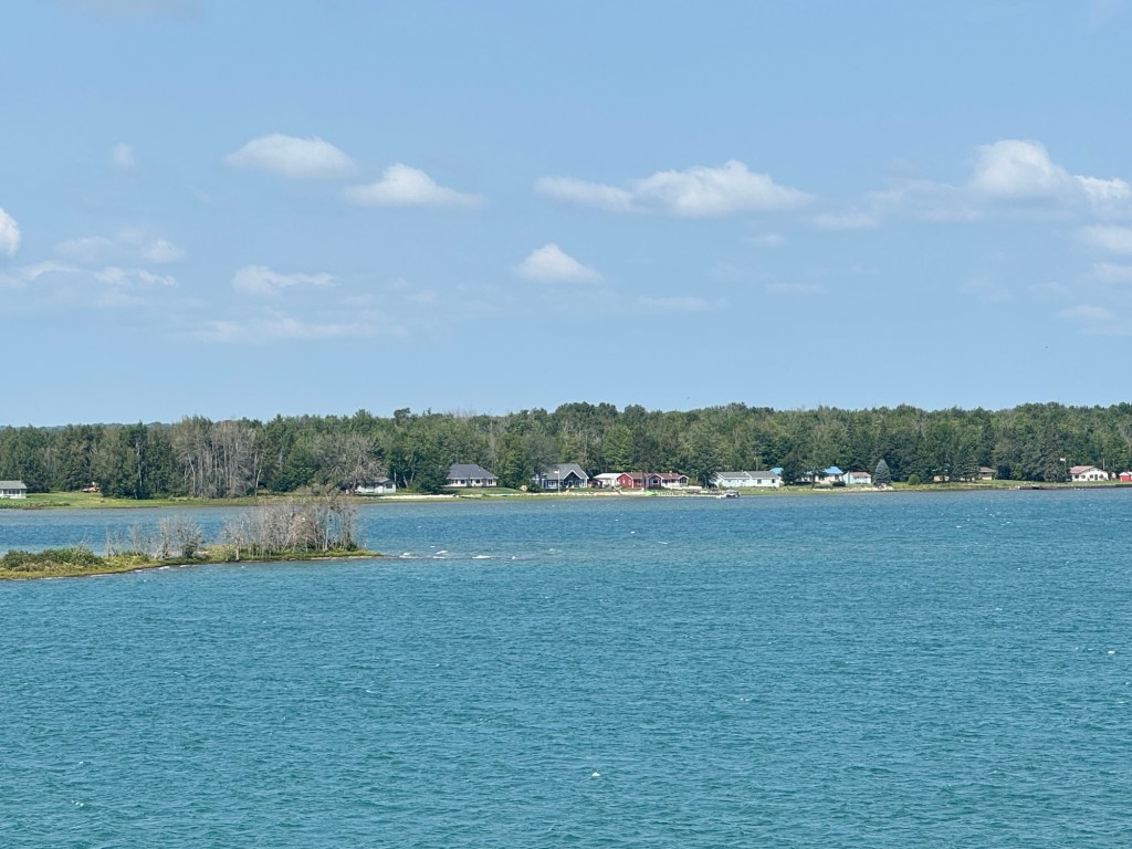 The ship continues on the journey into Lake Huron with many homes along the shore. The weather has improved as well.