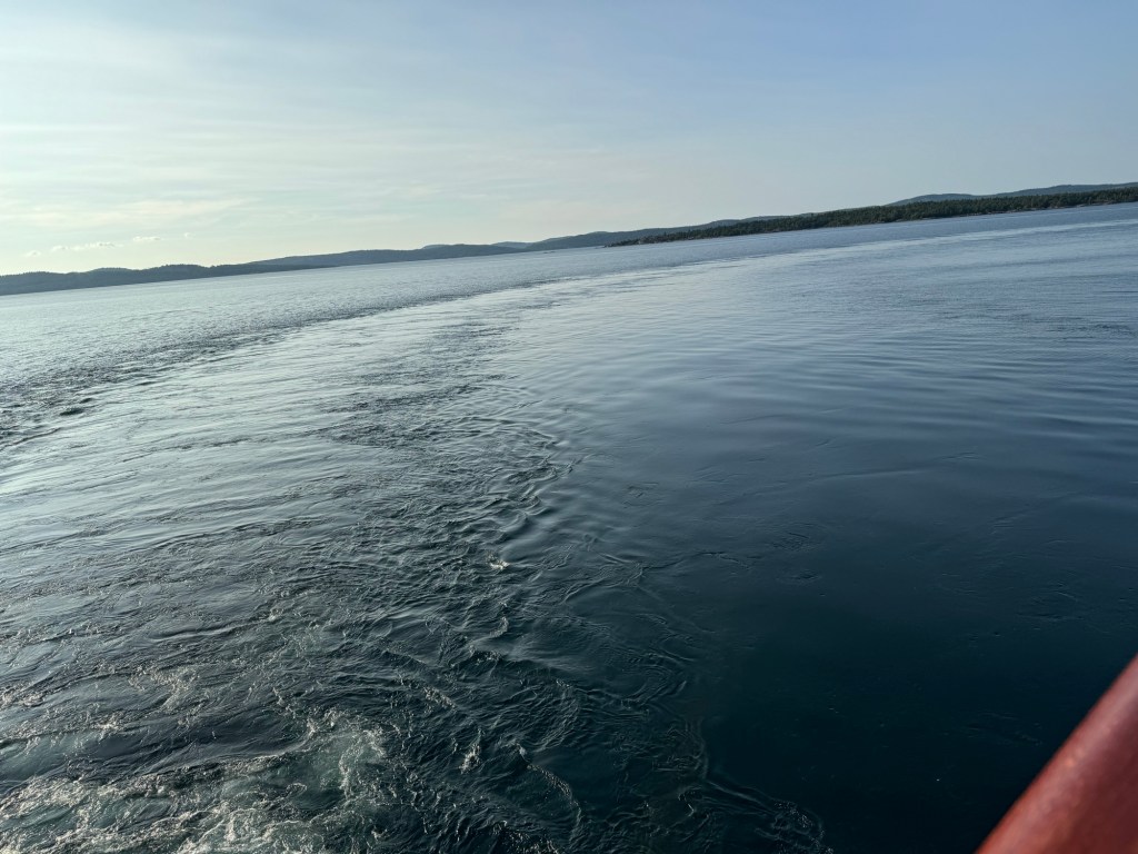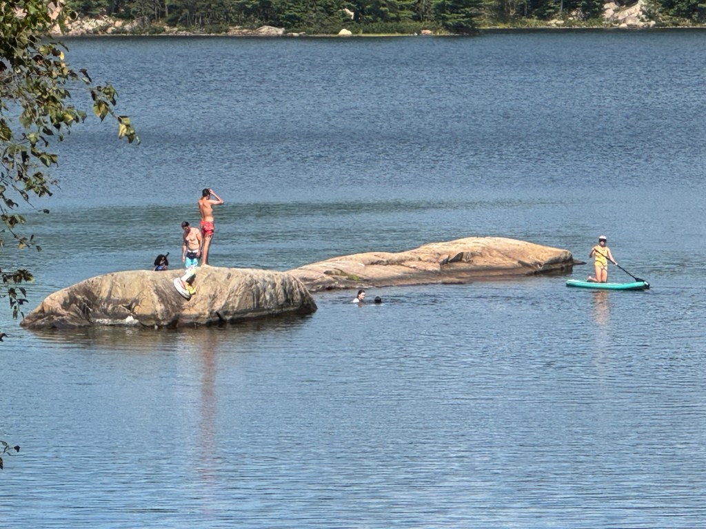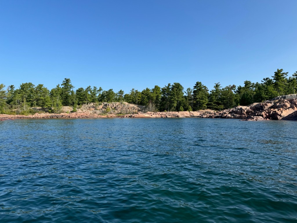 The shoreline reminds me of Bar Harbor – large granite rocks with pine tree forests. The water is crystal clear. Breathtaking!